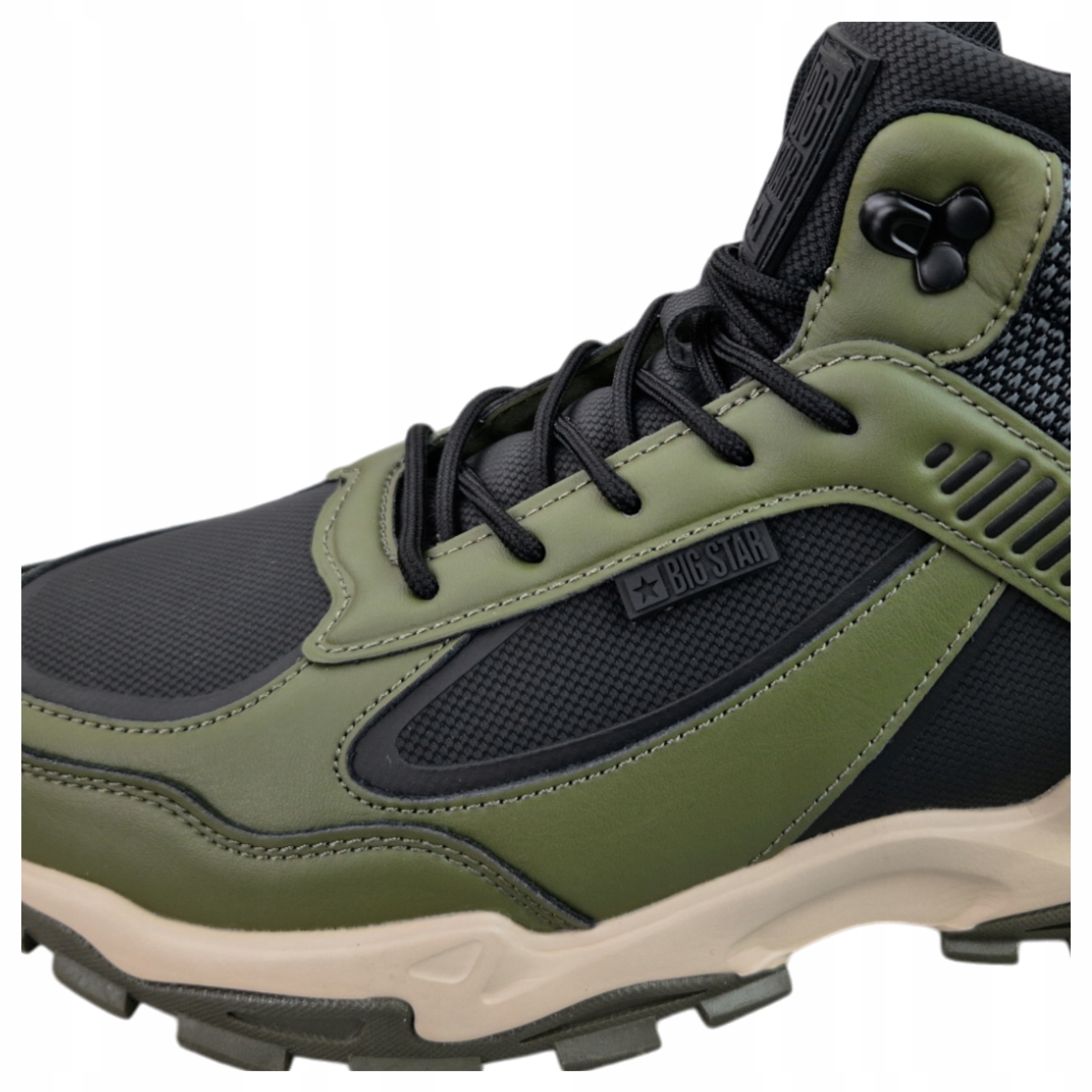 Вибирайте чоловічі великі зіркові взуття в стильному поєднанні оливкової зелені з чорними акцентами. Це взуття забезпечить вам неперевершений комфорт навіть у найхолодніші дні. Завдяки суцільному дизайну та теплому обробці ви забудете про холод - це взуття захистить вас незалежно від погодних умов. ☃