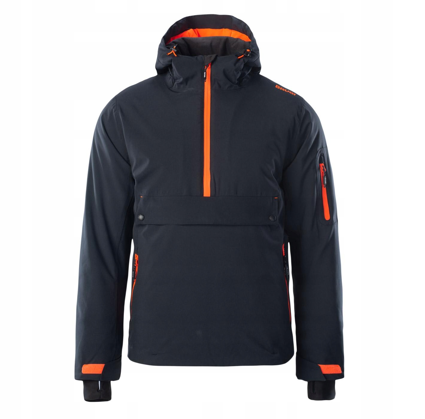зимова куртка Brugi Male має водонепроникну мембрану 10 000 мм H2O та дихання 5000 г/м²/24 год. Цей піджак має ламіновані замки та склеєні шви, , які ущільнюються. Слайдер на половину довжини та блискавка, розміщені на стороні, допоможе надіти та завантажувати куртку. Анти -Snow Relt та гнучкі внутрішні манжети захищають від проникнення снігу. Два бічні кишені відрізняють контрастні ламіновані замки. Крім того, ця модель має додаткову кишеню спереду.