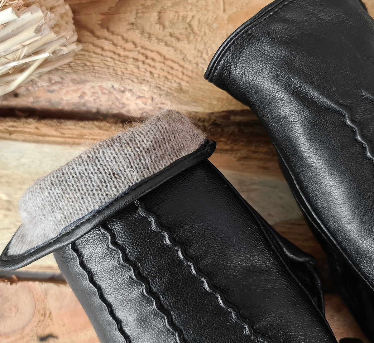 Класичні чорні рукавички з найякіснішої м'якої натуральної шкіри, з натуральною овечою підкладкою вовна.