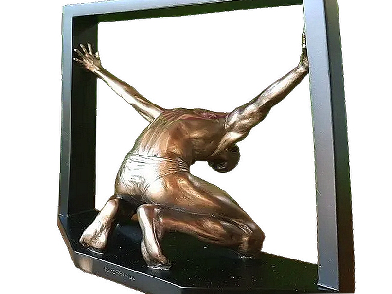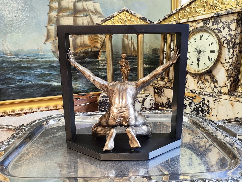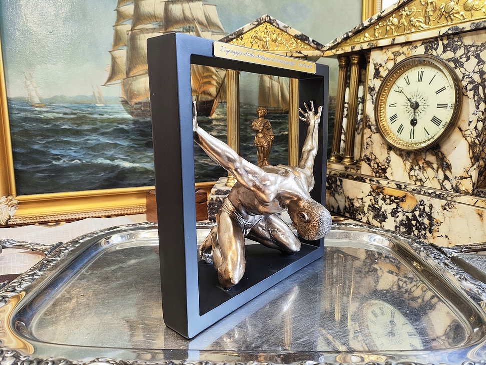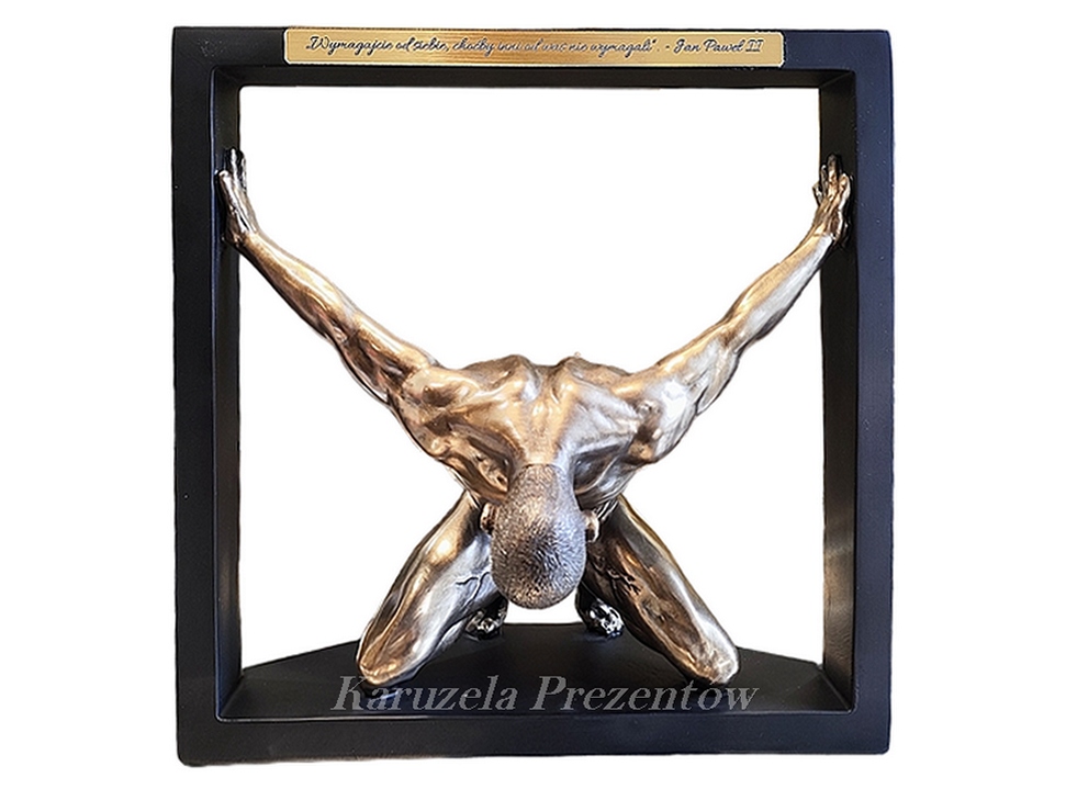 Я запрошую вас придбати прекрасну статуетку із зображенням коліна в рамці. Рамка символізує обмеження, чоловік намагається їх зламати. Художнє бачення людської боротьби з негараздами. Статуетка виготовлена з поліарезіна. Це суміш мармуру з смолами. Ширина 20,5 см