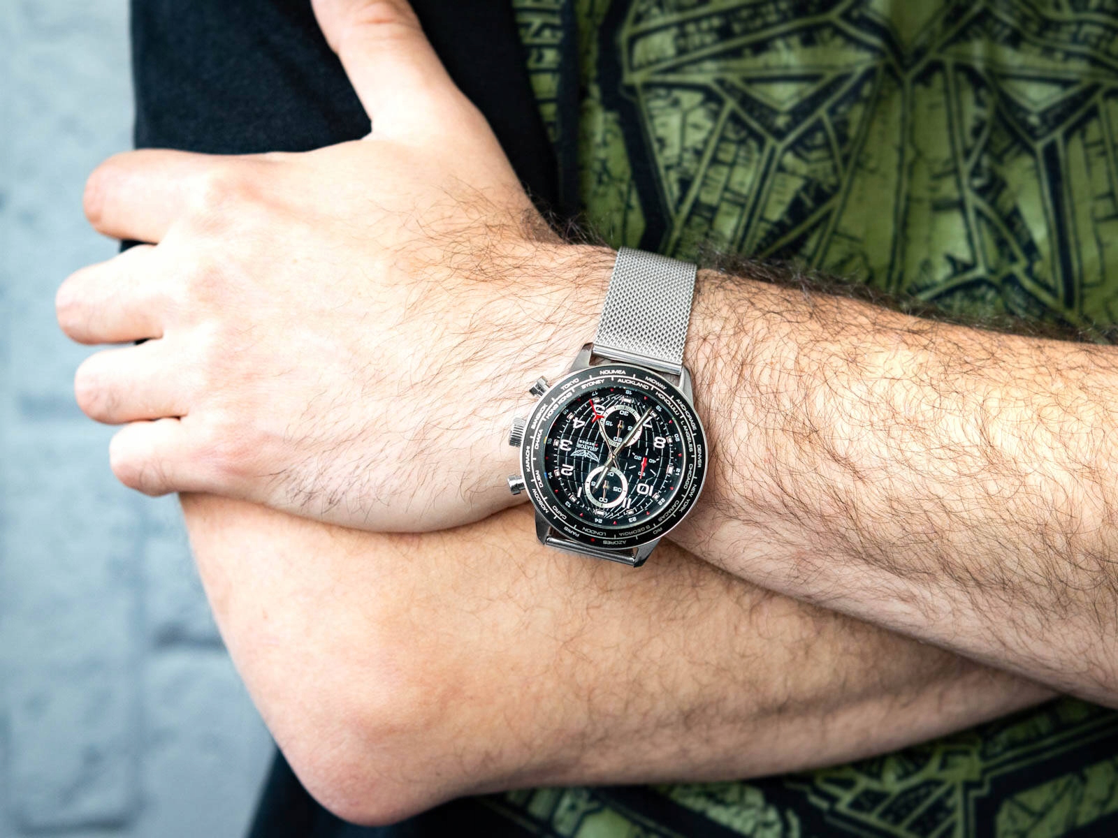 Завдяки своїм розмірам і зі смаком підібраним кольорам ця модель дуже ефектно виглядає на зап'ясті чоловіка.