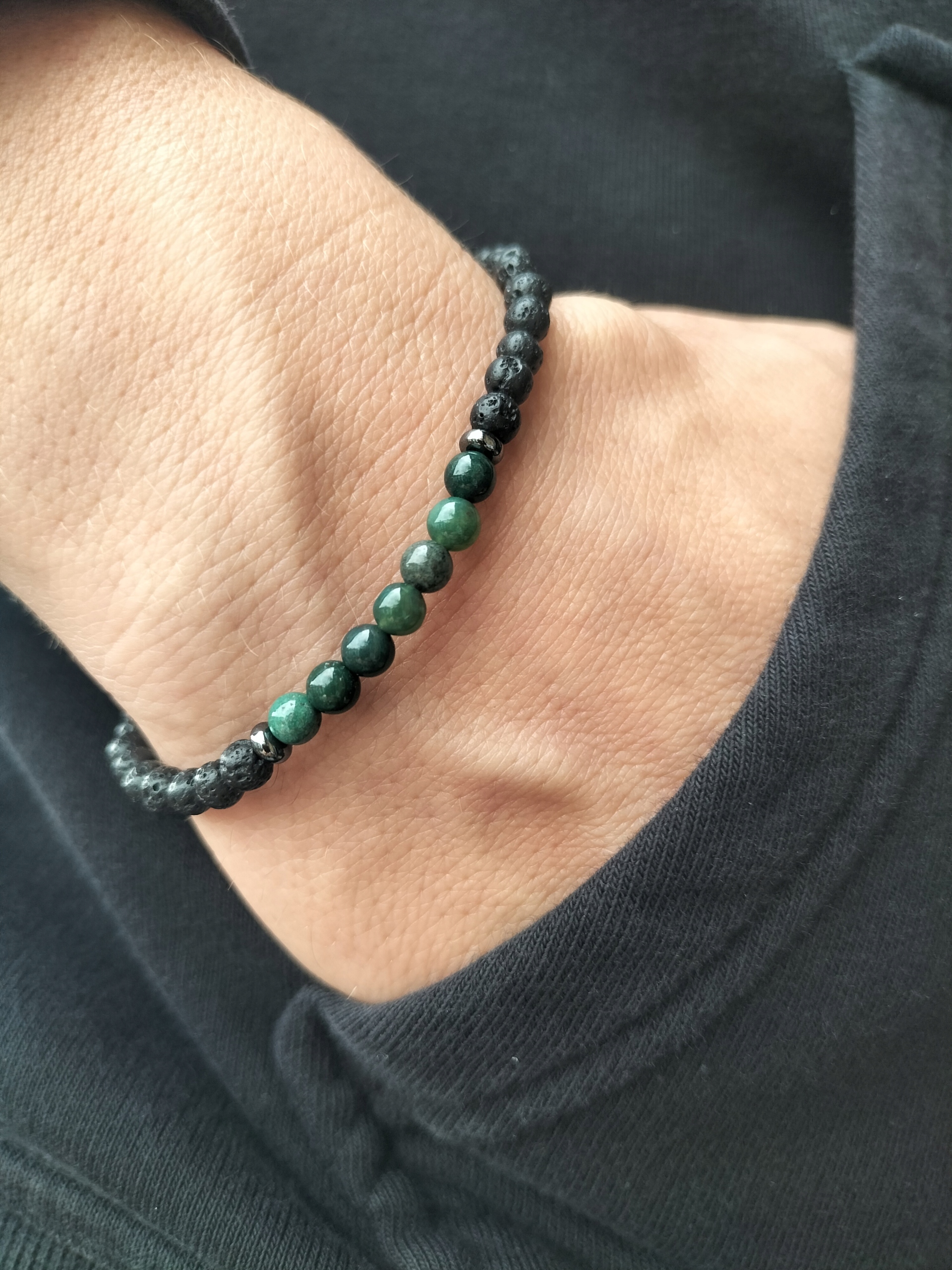 Чоловічий браслет Агат індійський, вулканічна лава і регульований гематит