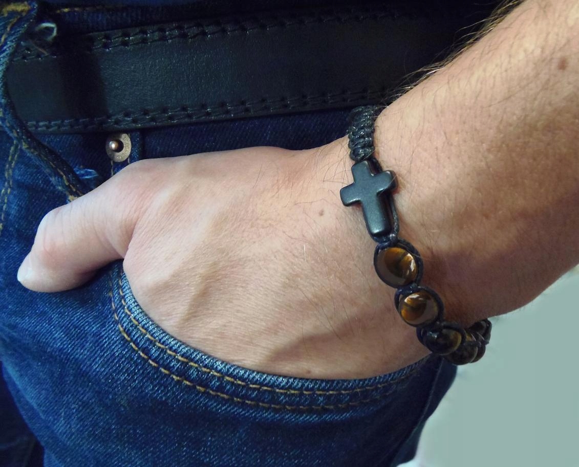 ЧОЛОВІЧИЙ БРАСЛЕТ ЧОТКИ З КАМІННЯМ ТИГРОВЕ ОКО