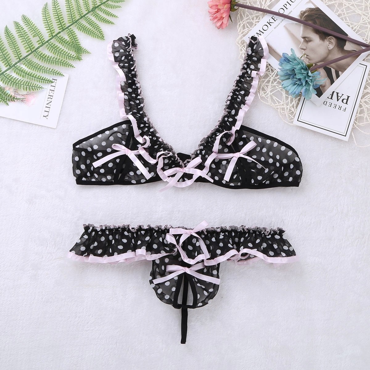 чоловічий бюстгальтер + труси, горошок, бантики хл