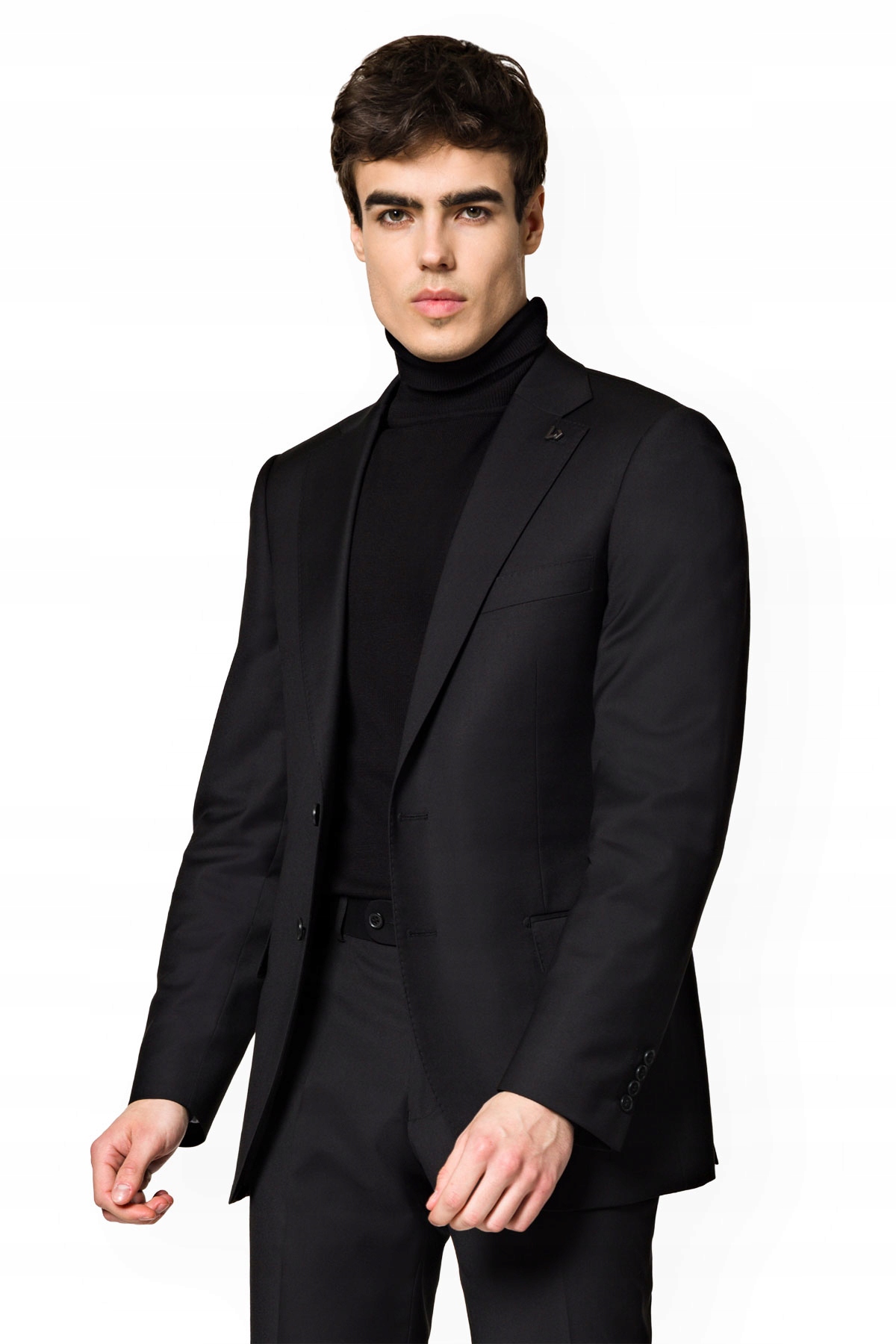 Класика чоловічого стилю, який ніколи не вийде з моди - костюм чорної тканини з косою плетінням. Ця модель складається з одиночної куртки для двох кнопок і штанів без ударів, злегка звужено вниз. У куртці є прості клаптики , дві кишені з клаптями , грудна кишка та міцні кнопки, виготовлені з галандишерентної смоли .