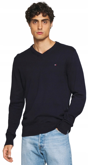 ЧОЛОВІЧИЙ ДЖЕМПЕР TOMMY HILFIGER ТЕМНО-СИНИЙ V-подібним вирізом R. M