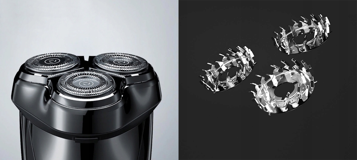 ✔️ Бритва має три комплекти незалежно плаваючих ріжучих головок, які забезпечують на третину більше простору для гоління, ніж звичайна подвійна бритва, щоб відповідати різним контурам обличчя.