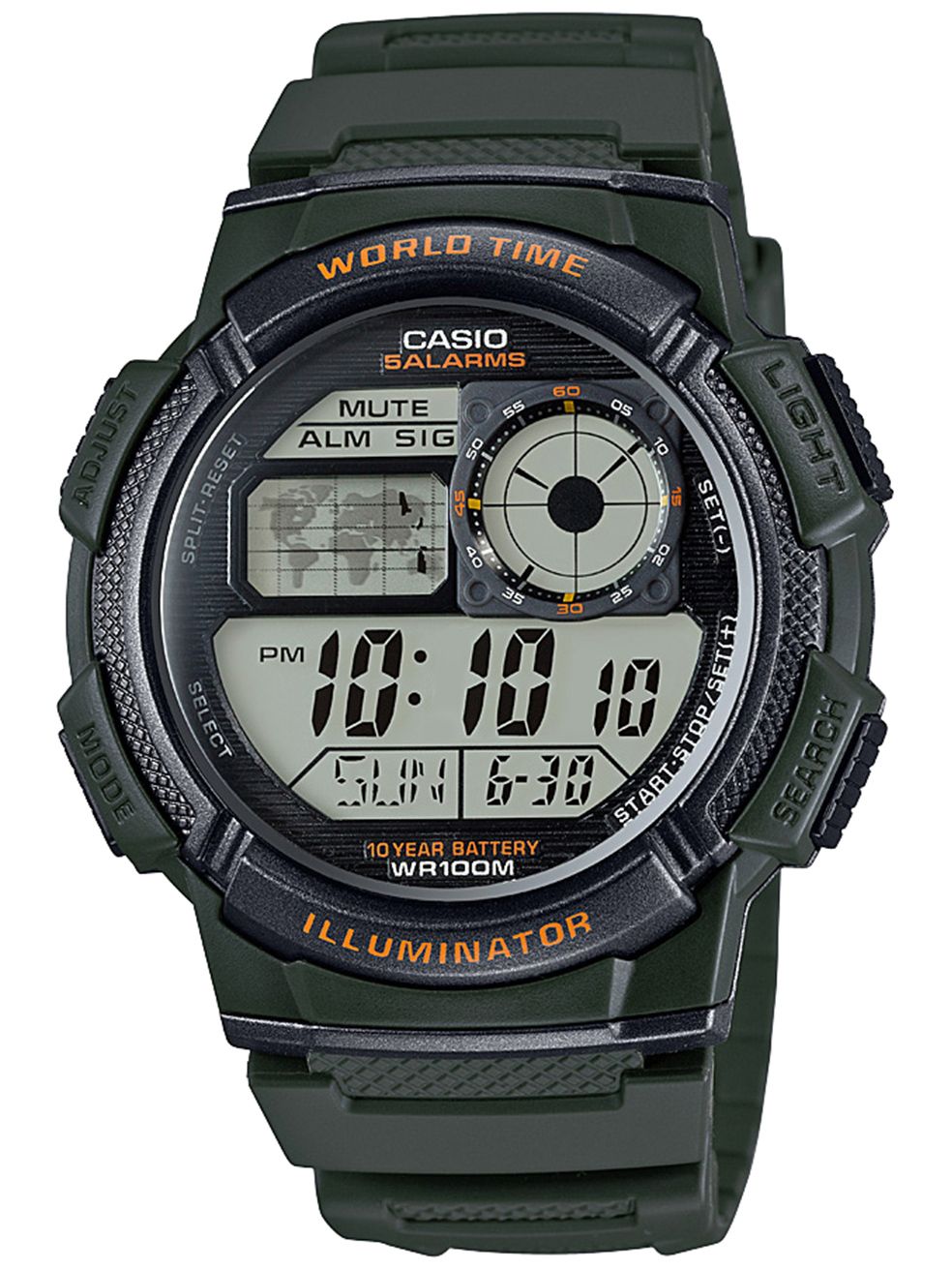 Casio AE-1000W-3AVEF - годинник, створений для чоловіків, які цінують функціональність і сучасний дизайн. Його військовий зелений колір надає йому характеру, а вдосконалені функції роблять його ідеальним компаньйоном як у повсякденному використанні, так і під час подорожей чи спортивних занять.