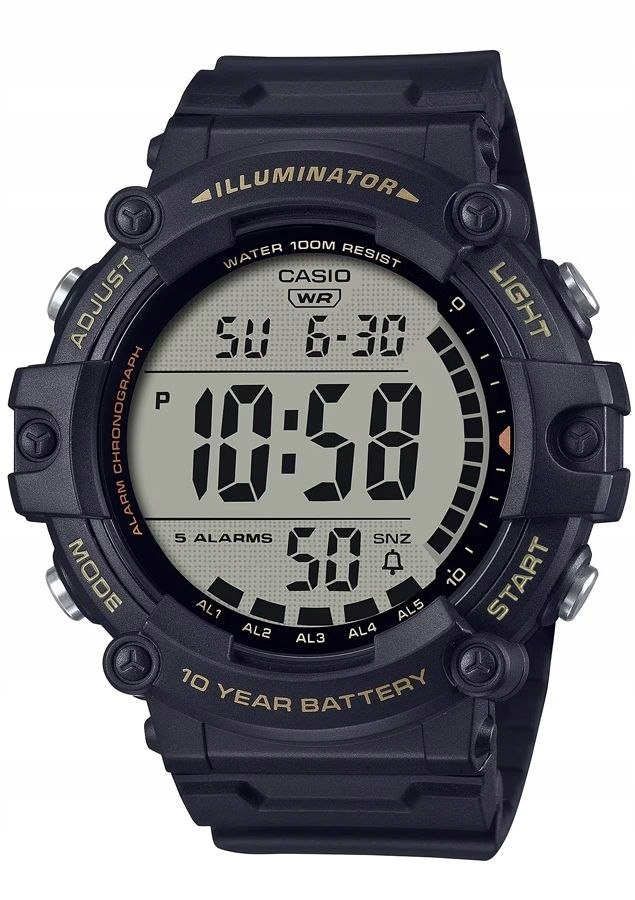 - Циферблат: Кварцовий. Автоматичний календар: розширене відображення дати, яке автоматично регулює дату для коротших місяців; таймер: можливість зворотного відліку від запрограмованого часу до нуля; 12/24 годинник: можливість відображення часу в 12 і 24 годинному режимах; секундомір: 1/100 вимірює час з точністю до однієї сотої секунди; Dual-Time: можливість встановити другий незалежний час; Будильник: годинник може подавати звукові сигнали 5 разів на добу, включаючи режим відкладення та опцію сигналізації про годину
