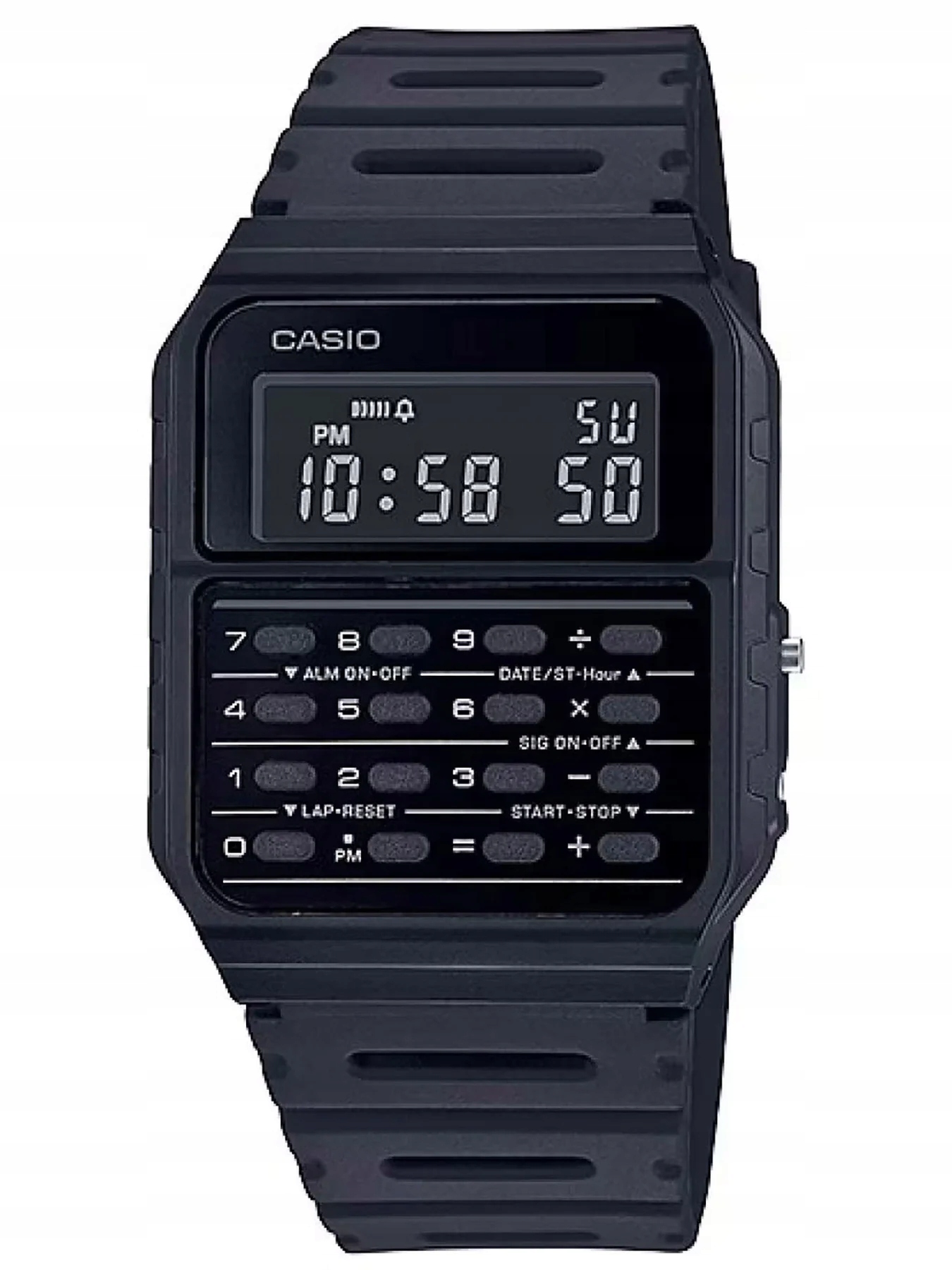 Casio CA-53WF-1B також є моделлю, яка виділяється своєю довговічністю. Водонепроникність 50 метрів робить годинник придатним для повсякденних ситуацій, таких як миття рук або випадковий контакт з водою. Гумовий ремінець забезпечує комфортне носіння, пристосовується до зап'ястя та забезпечує комфорт протягом усього дня.