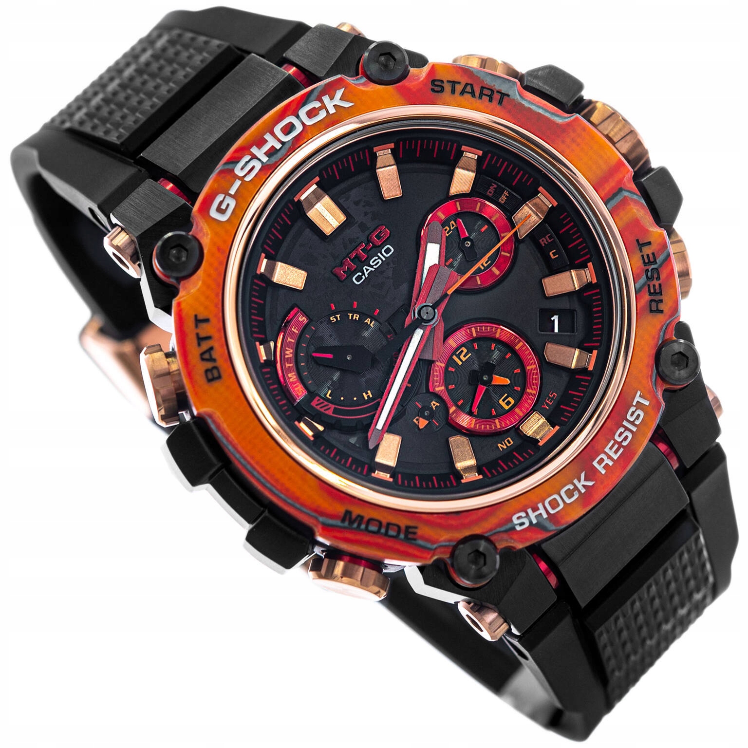 Новий, оригінальний CASIO MTG-B3000FR-1AER Exclusive 40th Anniversary Flare Red Limited Edition є однією з найсучасніших моделей G-Shock, що робить її унікальною серед обмежені колекції годинників. Це унікальне поєднання інноваційних матеріалів і передових технологій, які протягом багатьох років визначали годинники Casio як надійні та надзвичайно міцні. Модель MTG-B3000FR-1AER, підготовлена спеціально до 40-річчя бренду G-Shock, відрізняється унікальним дизайном, якому немає рівних.