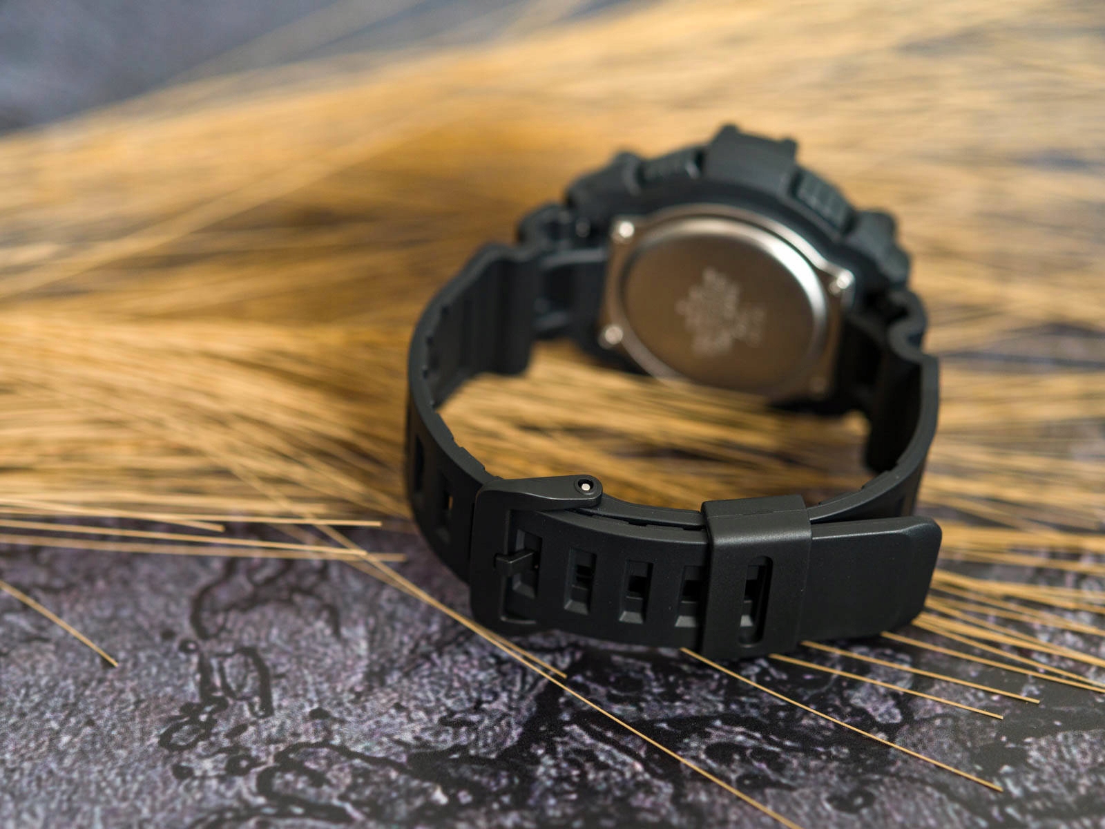 Годинник виготовлено зі світлого чорного пластику, що робить його зручним у носінні.