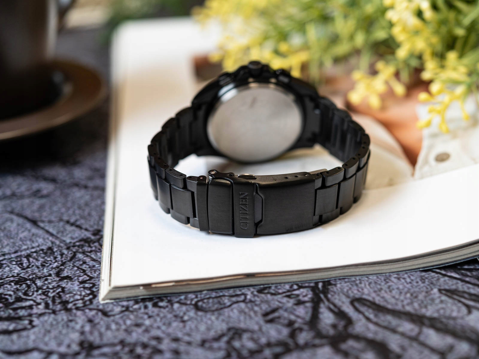 Сталевий браслетміцний і зручний у носінні. Він закінчується застібкою-метеликом, яка має додатковий захист, запобігаючи випадковому розстібанню годинника.
