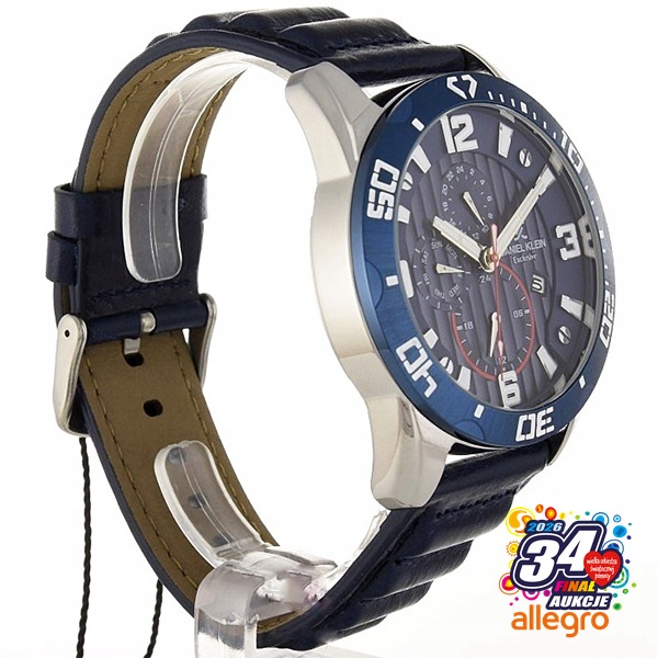 Годинник оснащено точним кварцовим механізмом, що забезпечує точне вимірювання часу. Корпус виготовлений з гіпоалергенної латуні в сріблястому кольорі, виглядає солідно та елегантно. Все це доповнюється високоякісним шкіряним ремінцем темно-синього кольору, який забезпечує комфорт під час носіння.