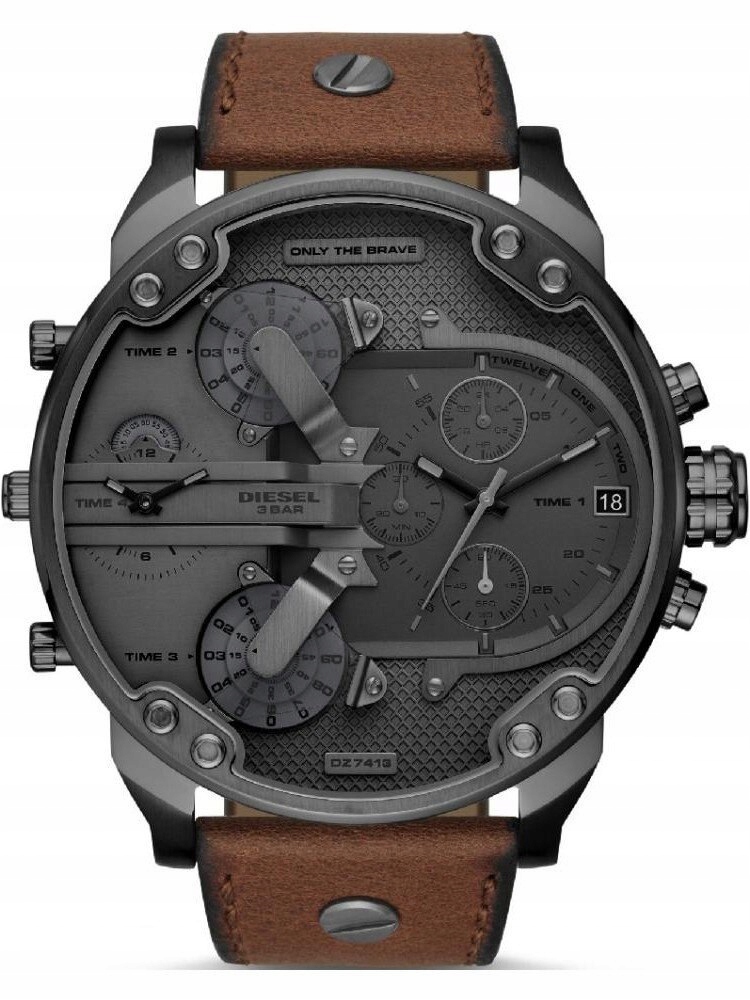 Чоловічий годинник Diesel Mr. Daddy 2.0 DZ7413 - великий чоловічий годинник. Коричневий шкіряний ремінець ідеально поєднується з чорним корпусом з гіпоалергенної нержавіючої сталі. На циферблаті встановлено 4 окремих механізми вимірювання часу. Все це покрито мінеральним склом, яке гарантує стійкість до подряпин і тріщин. Водонепроникність 30 метрів захищає від бризок. Використовується кварцовий механізм надійний. Модель Diesel Mr. Daddy 2.0 DZ7413 - це поєднання невимушеної елегантності та спортивного характеру - вона повинна привертати увагу!