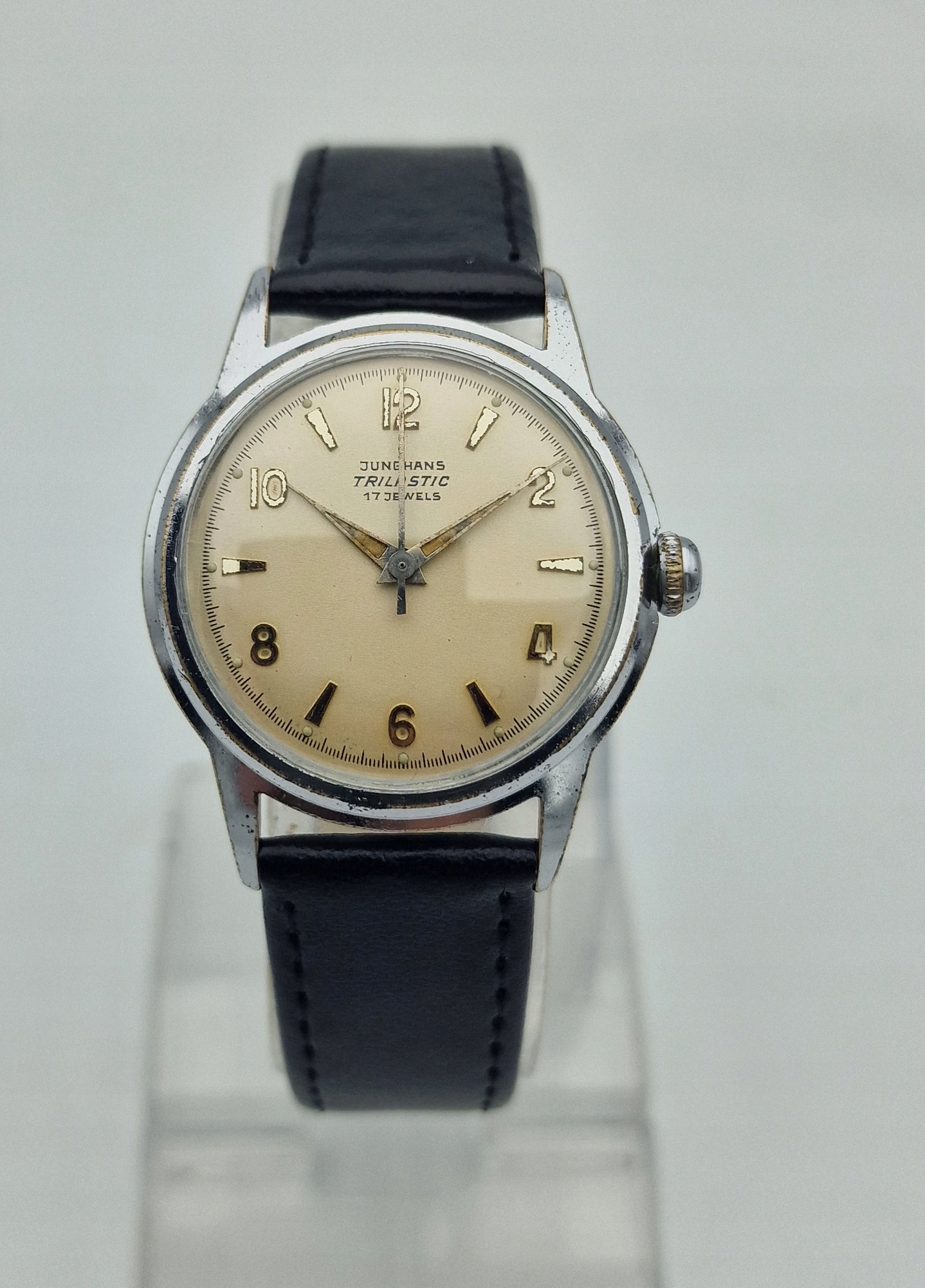 Цього разу я повинен запропонувати ознаменний годинник для цінителів та зачаровує. Це класична модель трилластичних годинників Junghans з 1950 -х років, в хромованій конверті з інкаблоком та антимагнітною. Годинник на гарній прогулянці. Майже в ідеальному стані для вашого віку ...