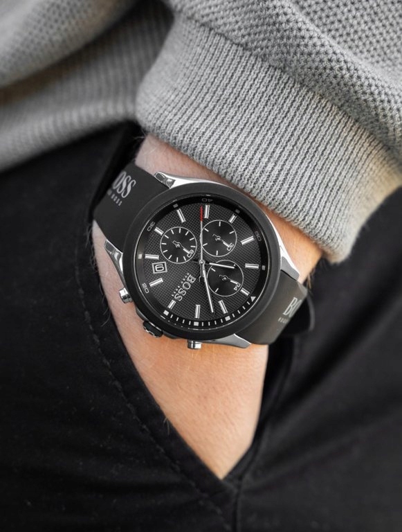 Hugo Boss 1513716 із серії Velocity може стати ідеальною пропозицією для чоловіка, який шукає брендове доповнення до менш офіційного стилю. Сріблястий сталевий корпус з'єднаний з чорним пластиковим кільцем. Також дана модель має зручний каучуковий ремінець чорного кольору з логотипом виробника. Годинник оснащений хронографом і розширеним дисплеєм дати, що показує день місяця і час у 24-годинному форматі. Модель Hugo Boss1513716 походить із серії Black, в набір входить елегантна чорна упаковка, яка ідеально підходить для подарунку.