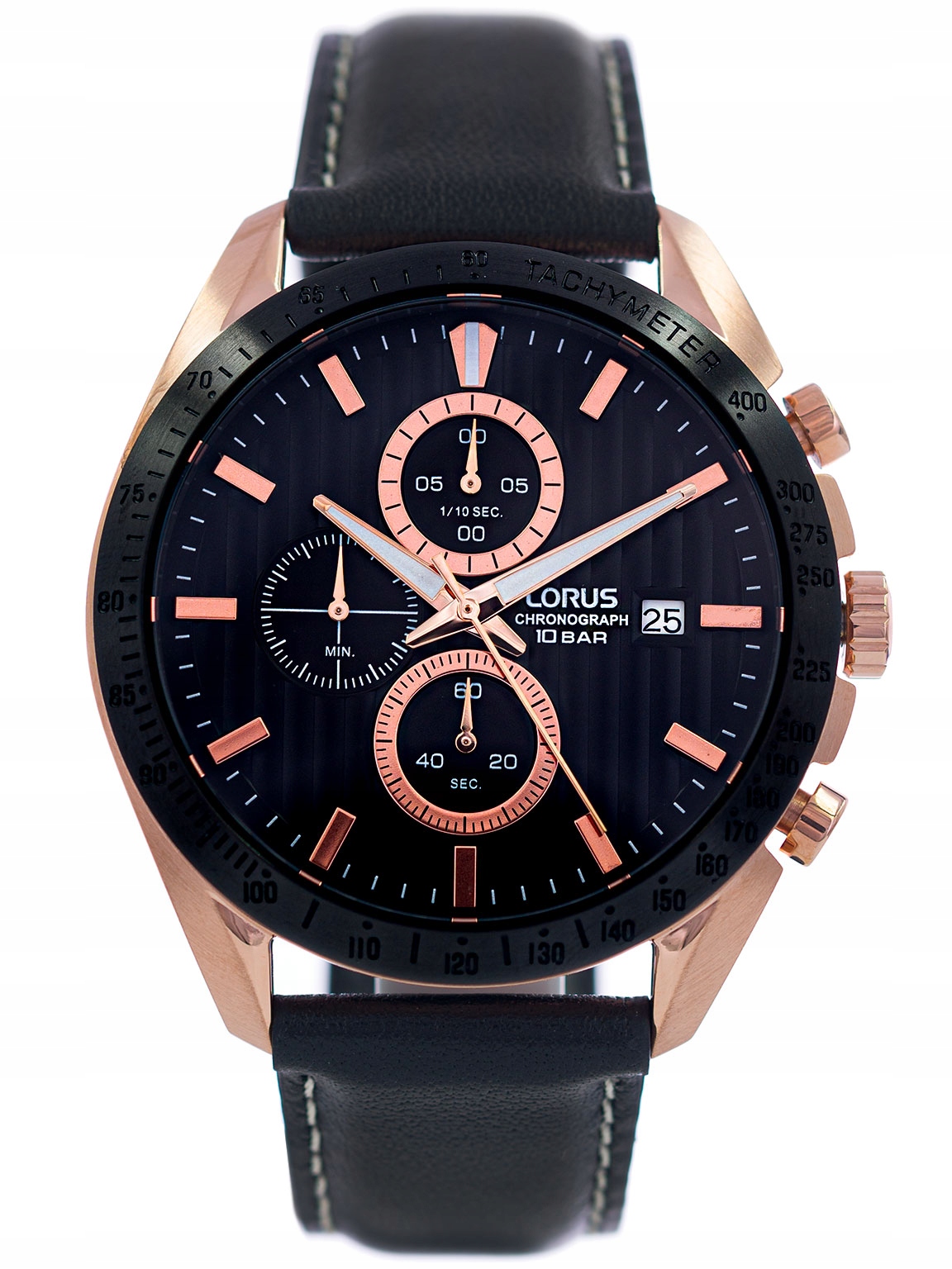 ЧОЛОВІЧИЙ ГОДИННИК LORUS RM308HX9 ЧОРНИЙ НА РЕМІНЦІ ХРОНОГРАФ ELEGANT 100M