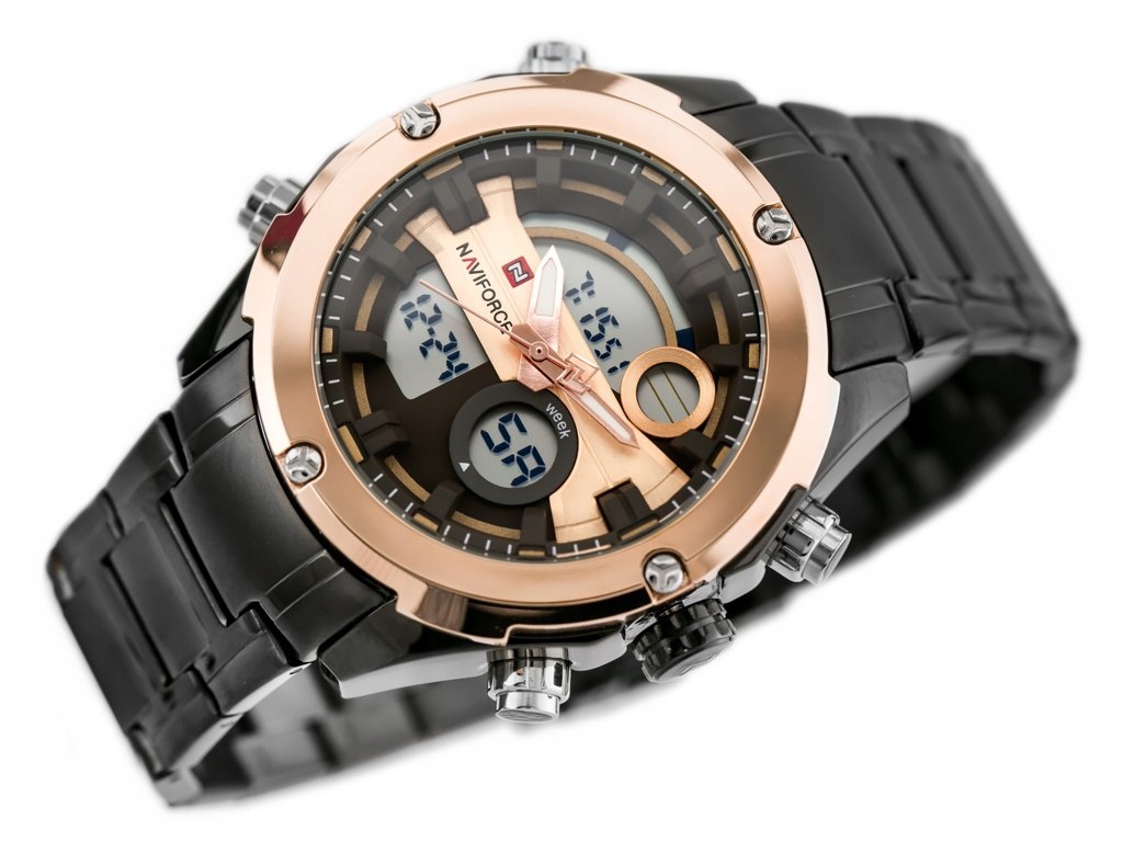 ЧОЛОВІЧИЙ ГОДИННИК NAVIFORCE GLOCK - (zn039d) - чорний/рожеве золото
