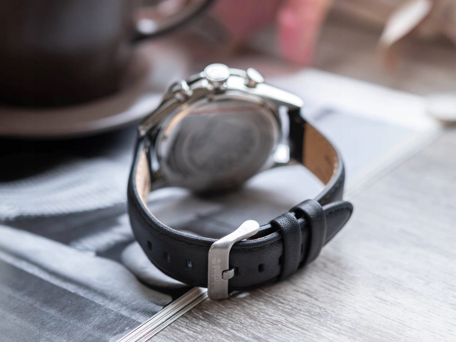 шкіряний ремінь в чорному, ідеально адаптується до чоловічого зап'ястя.