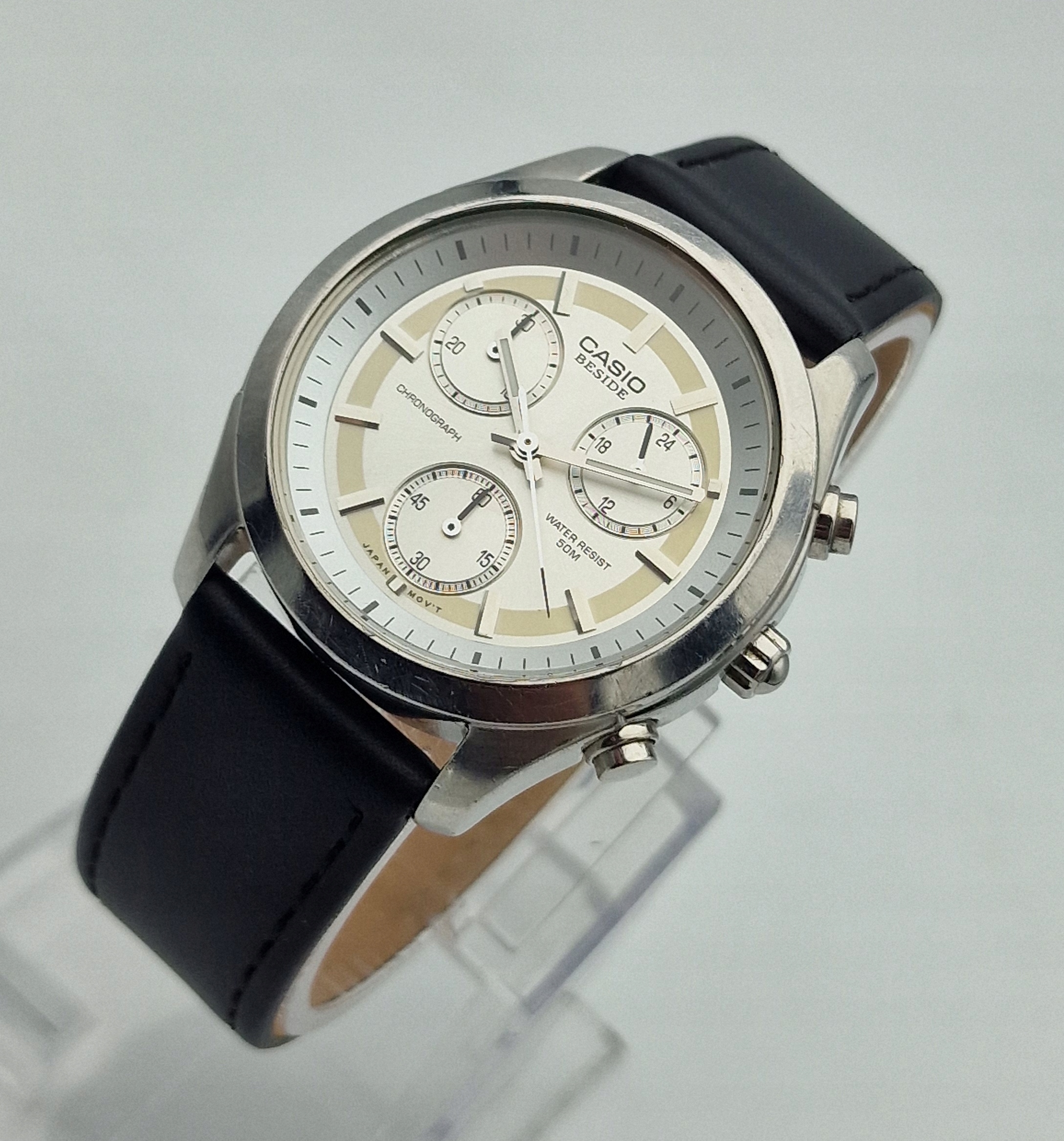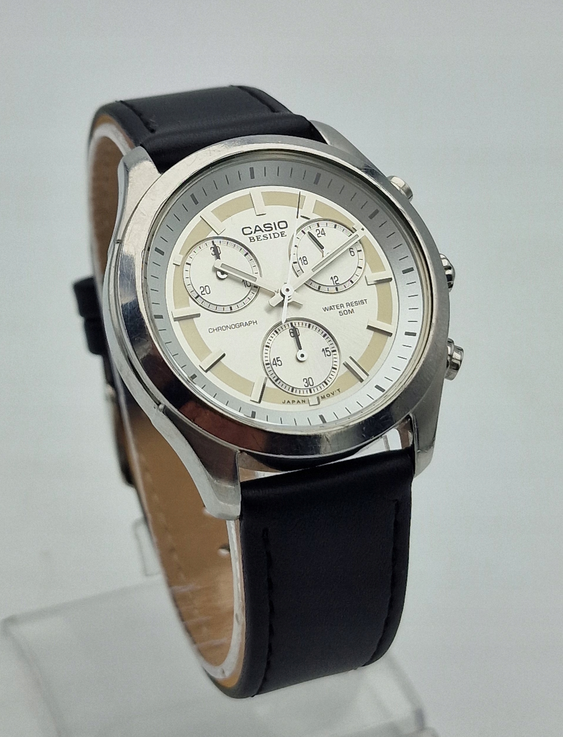 ЧОЛОВІЧИЙ ГОДИННИК З ЯПОНСЬКОЇ СТАЛІ CASIO BESIDE CHRONOGRAPH 1990-х - ІДЕАЛЬНИЙ