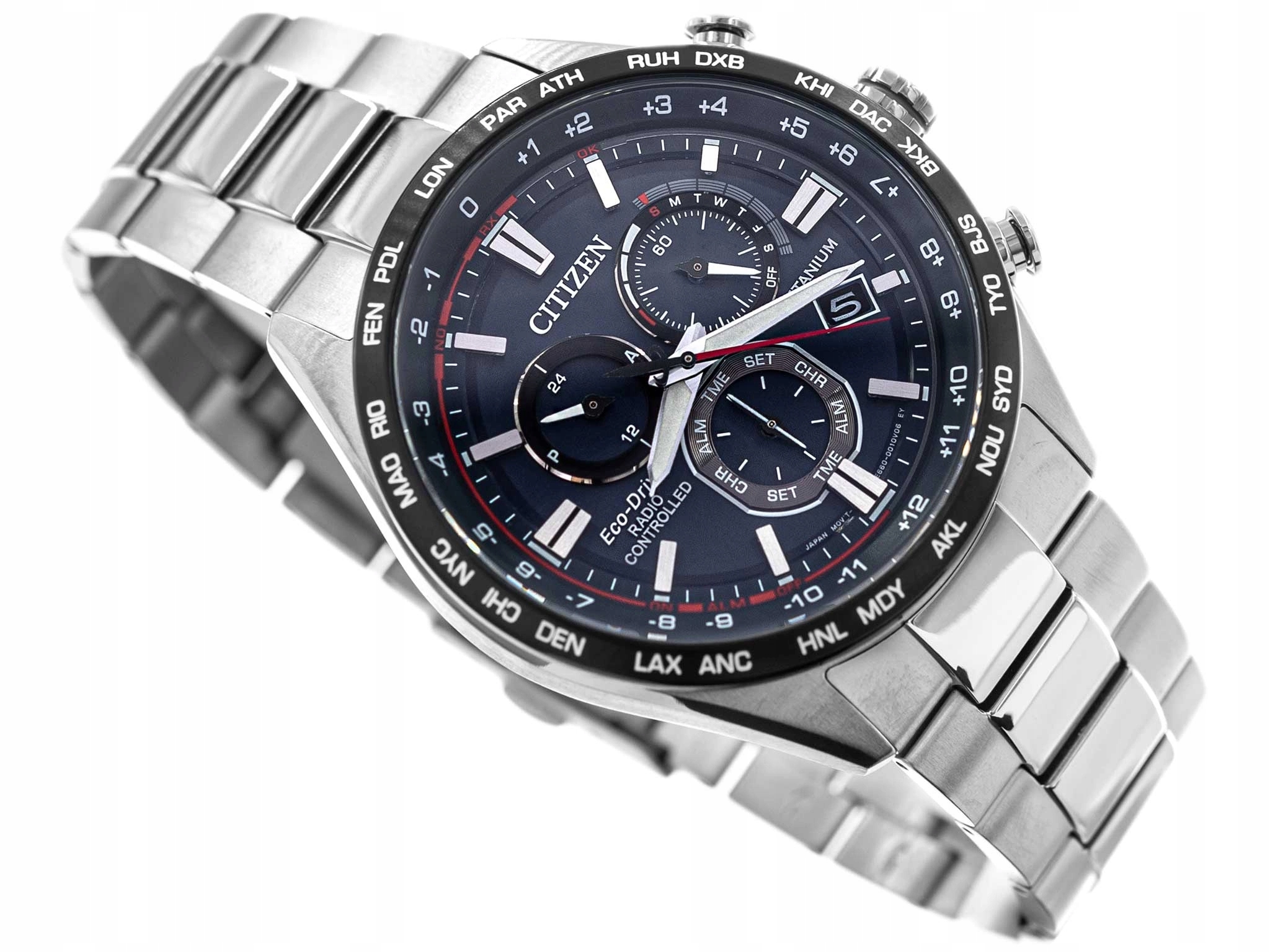 - Радіо контролюється: синхронізація годинника з радіохвилями з ядерним годинником, 6 приймачів по всьому світу. тимчасовий.