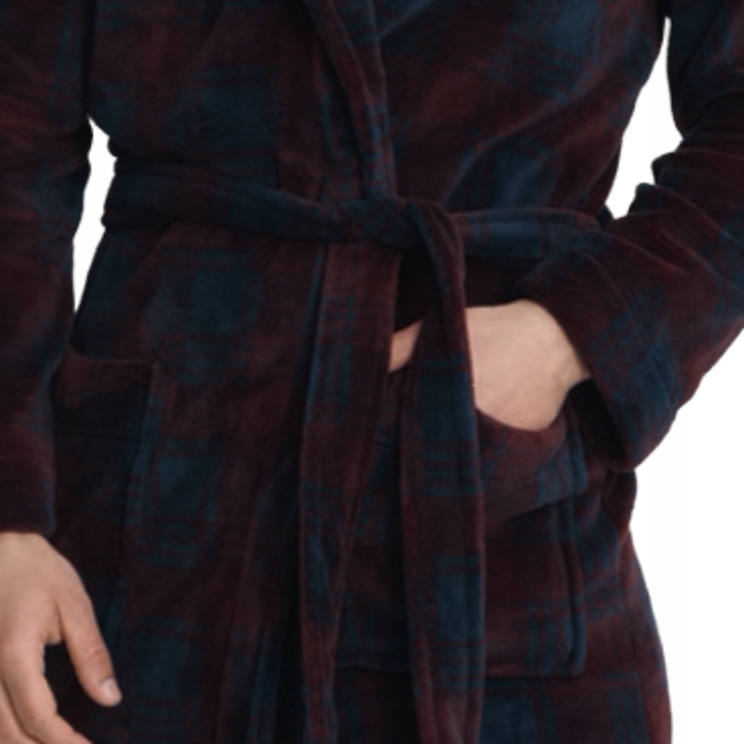 Елегантний чоловічий халат HENDERSON UNDEGRO бордового кольору виготовлений з м'якої флісової тканини, яка забезпечує комфорт і добре зберігає тепло. На рівні грудей є вишивка з логотипом бренду. Це надзвичайно зручний халат вільного повсякденного крою довжиною до коліна. Він зав'язується на талії широким поясом, а спереду конверт, широкий комір і дві великі кишені для дрібниць роблять його практичним.