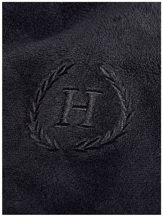 Елегантний чоловічий халат HENDERSON UNTIMES чорного кольору виготовлений з м'якої флісової тканини, яка забезпечує комфорт і добре зберігає тепло. На рівні грудей є вишивка з логотипом бренду. Це надзвичайно зручний халат вільного повсякденного крою довжиною до коліна. Він зав'язується на талії широким поясом, а спереду конверт, широкий комір і дві великі кишені для дрібниць роблять його практичним.
