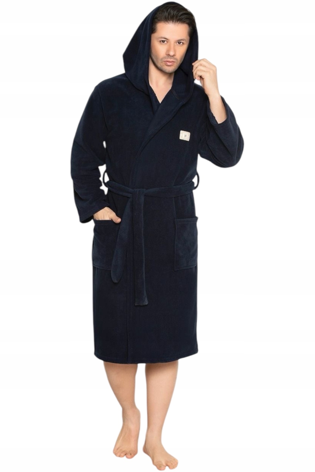 Гладкий флісовий халат, капюшон, кишені, логотип.