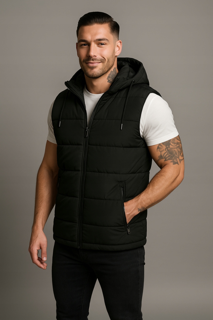 ЧОЛОВІЧИЙ ЖИЛЕТ - ЧОРНИЙ - ЗІ ЗНІМНИМ КАПЮШОНОМ - СТЬОБАНИЙ XL