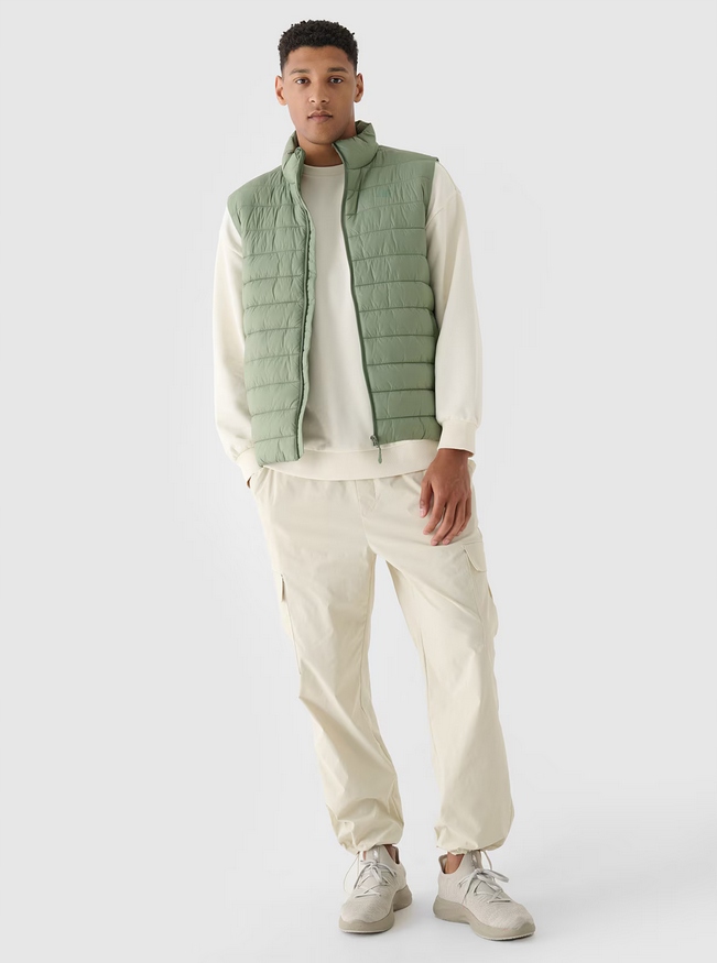 Чоловічий пуховий жилет з коміром-стійкою з легкою конструкцією, тому його можна носити як під час повсякденних занять, так і під час занять спортом у теплі дні в перехідний період.