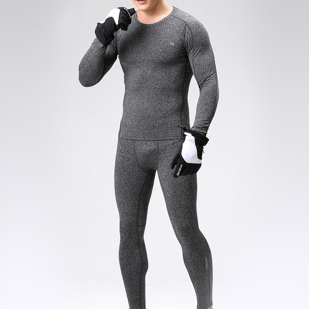 Чоловічий жіночий термокомплект із флісовим верхом і низом із довгими рукавами сірого кольору
