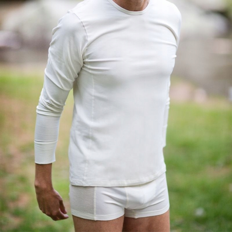 Вовняна чоловіча майка прилеглого крою та трохи подовженої спинки. Передня частина з високоякісного бамбукового волокна відводить зайве тепло і забезпечує вентиляцію. Подовжена спинка з мериносової вовни підтримує постійну температуру тіла і чудово ізолює частини хребта, найбільш схильні до впливу холоду. Плоскі шви і еластичні нитки забезпечують зручність використання в складі білизни цілий рік. Ретельна робота та високоякісні тканини означають, що цю футболку можна носити як частину повсякденного літнього стилю.