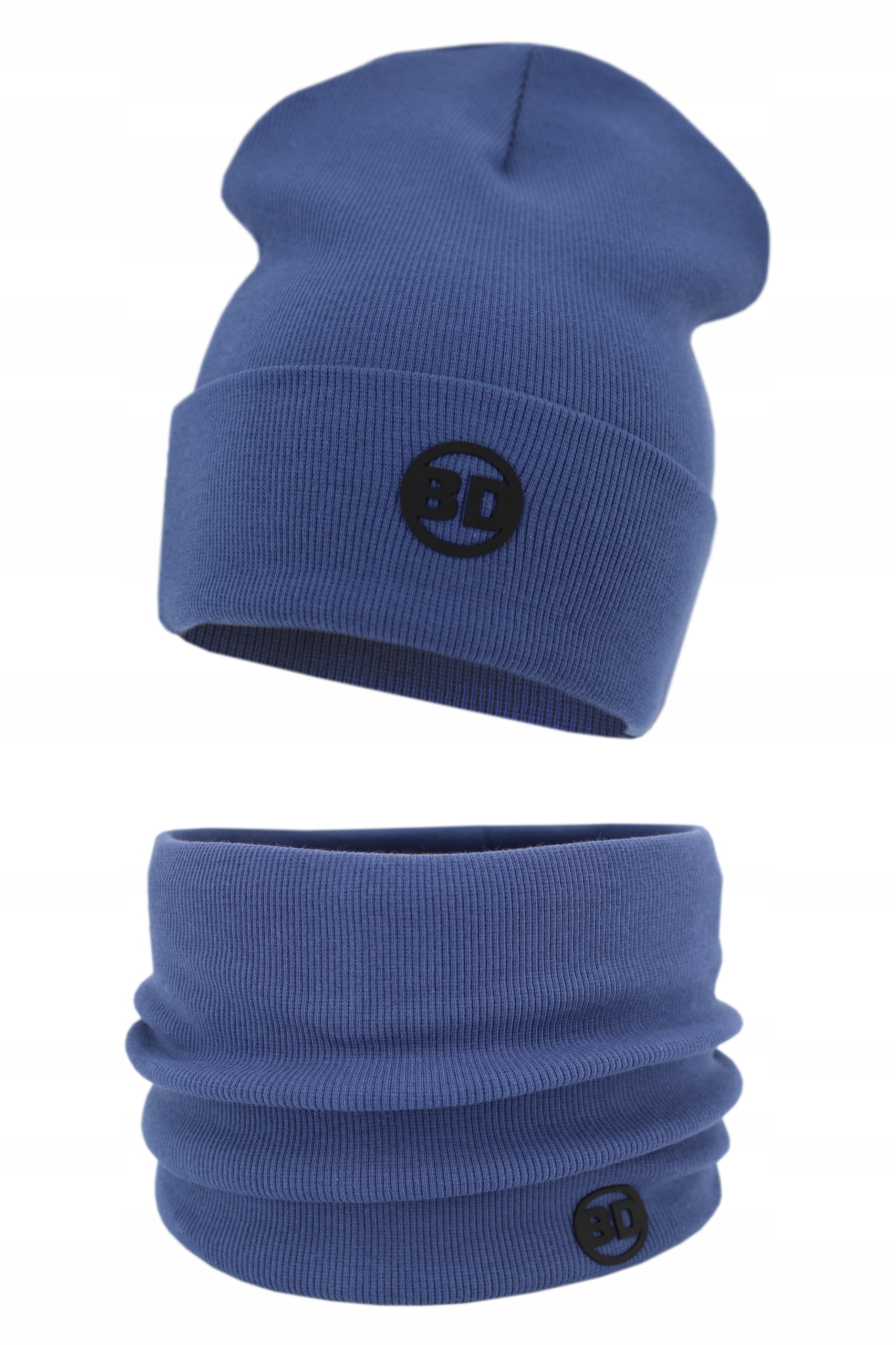 ЧОЛОВІЧИЙ ДВІЙНИЙ БАВОВНОВИЙ КОМПЛЕКТ КАПЕЛЮХ + ТРУБА - ТЕМНІ ДЖИНСИ