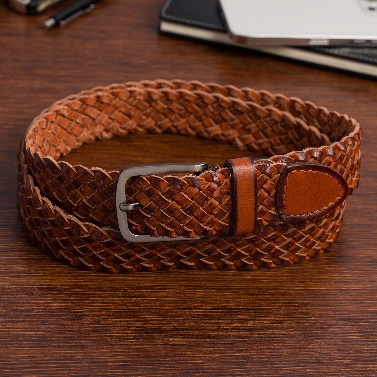 Це не звичайний ремінь - це класика в сучасній нотці, яка підійде як любителям елегантного мінімалізму, так і тим, хто цінує повсякденний образ. Світло-коричневий колір із мідним відтінком надає йому теплий, стильний характер, а натуральна плетена шкіра гарантує довговічність та унікальний вигляд.
