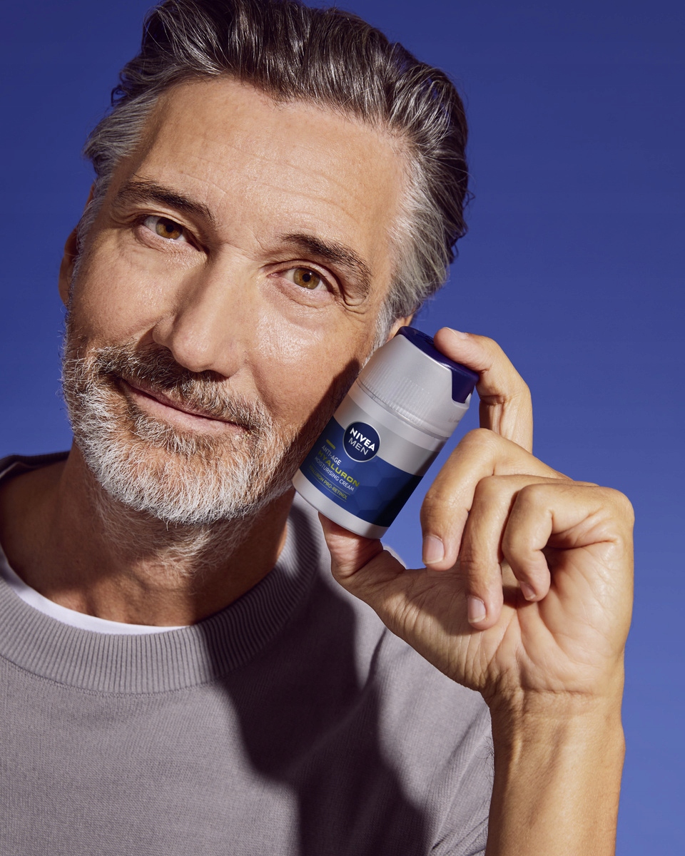 Зволожуючий крем проти зморшок для чоловіків NIVEA MEN ANTI-AGE HYALURON PRO-RETINOL – це формула, створена спеціально для чоловічої шкіри з ознаками старіння. Крем для обличчя для чоловіків збагачений гіалуроновою кислотою, яка відповідає за зволоження шкіри та стимулює природні процеси оновлення клітин. Помітно зменшує глибокі зморшки, підтягує шкіру, глибоко зволожує та покращує її стан. Чоловічий крем від зморшок також містить систему фільтрів UVA/UVB SPF 15, що забезпечує захист шкіри від сонця, що сприяє передчасному старінню шкіри. Формула без мікропластику згідно з визначенням ЮНЕП. Переносимість шкірою підтверджена дерматологічно.