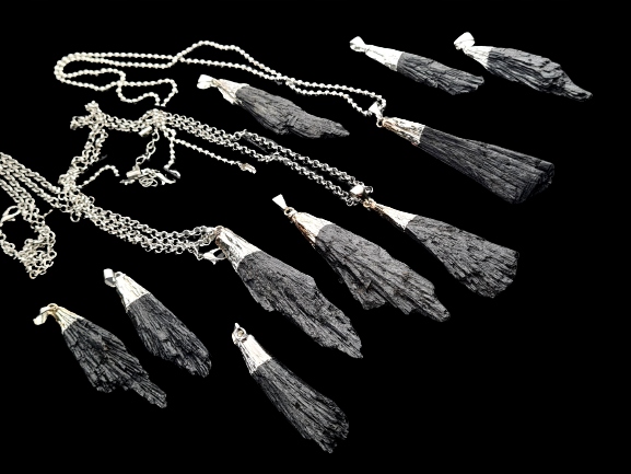 Чоловічий кулон, великий чорний турмалін, крила, срібло на ланцюжку