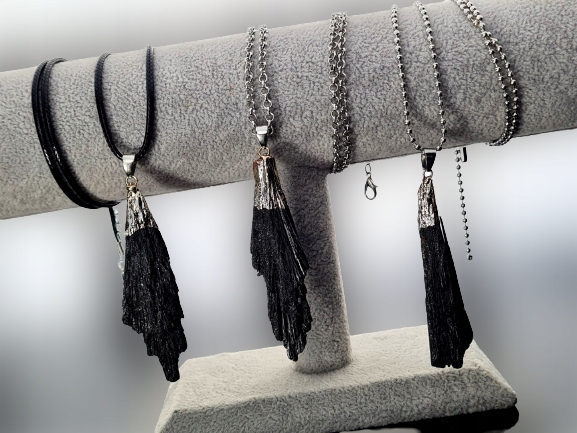 Великий турмалін в оправі ручної роботи на ланцюжку, неправильної природної форми