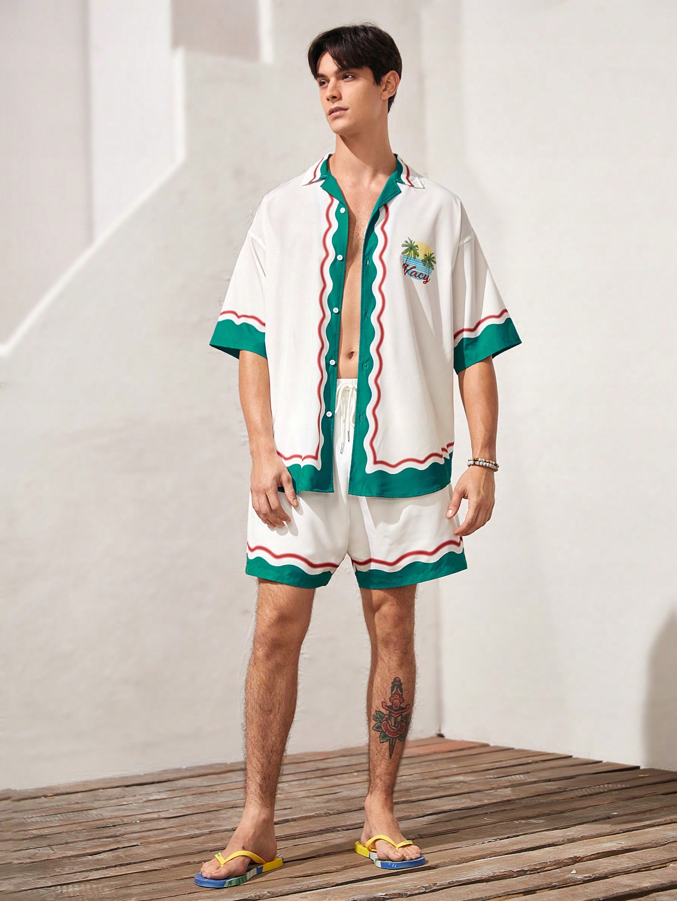 Чоловічий літній набір двоколірна сорочка + шорти Bermuda Shein M