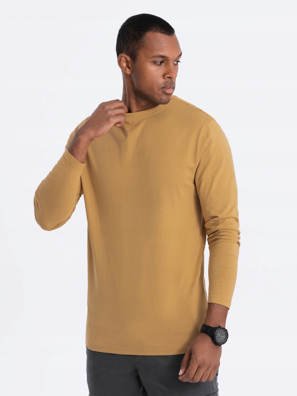 Чоловічий лонгслів без принта - гірчичний V10 OM-LSBL-0106 XL