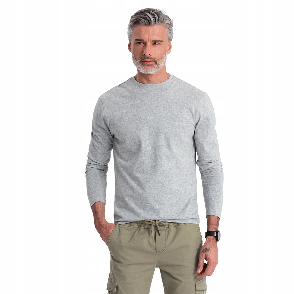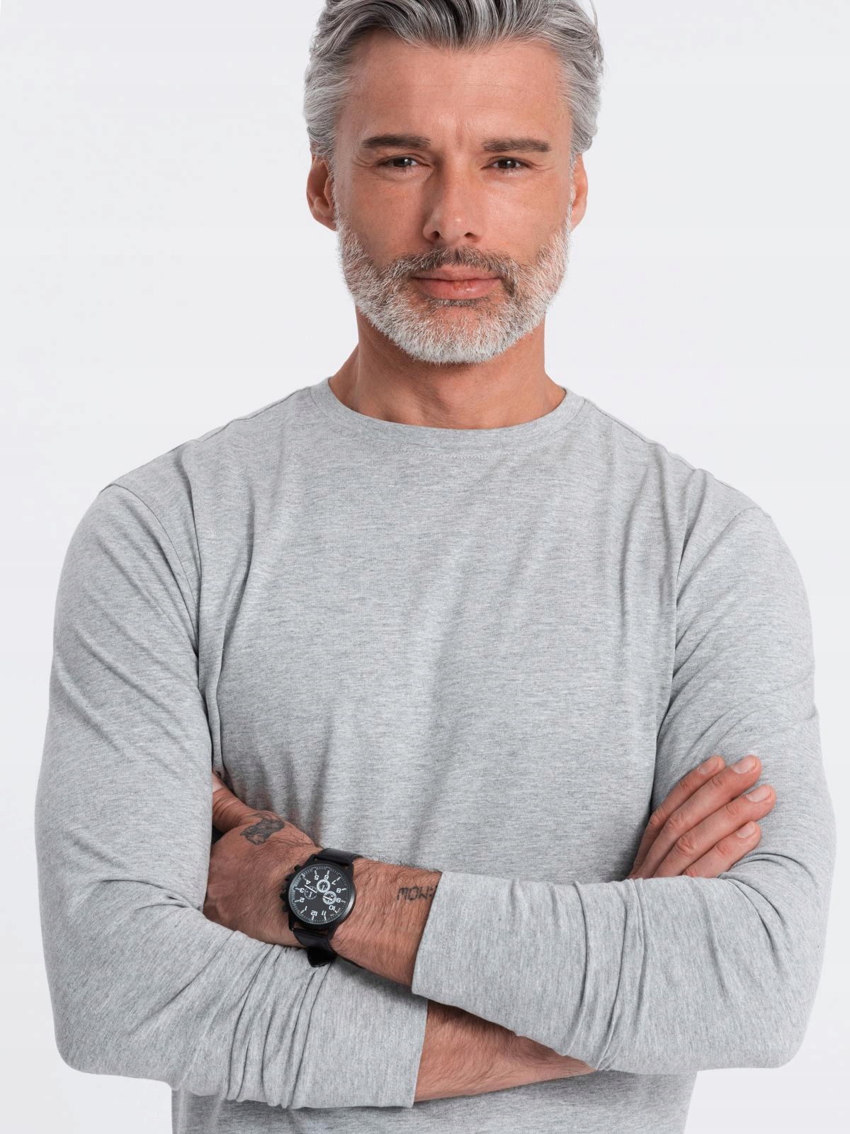Чоловічий лонгслів без принта, сірий меланж V3 OM-LSBL-0106 L