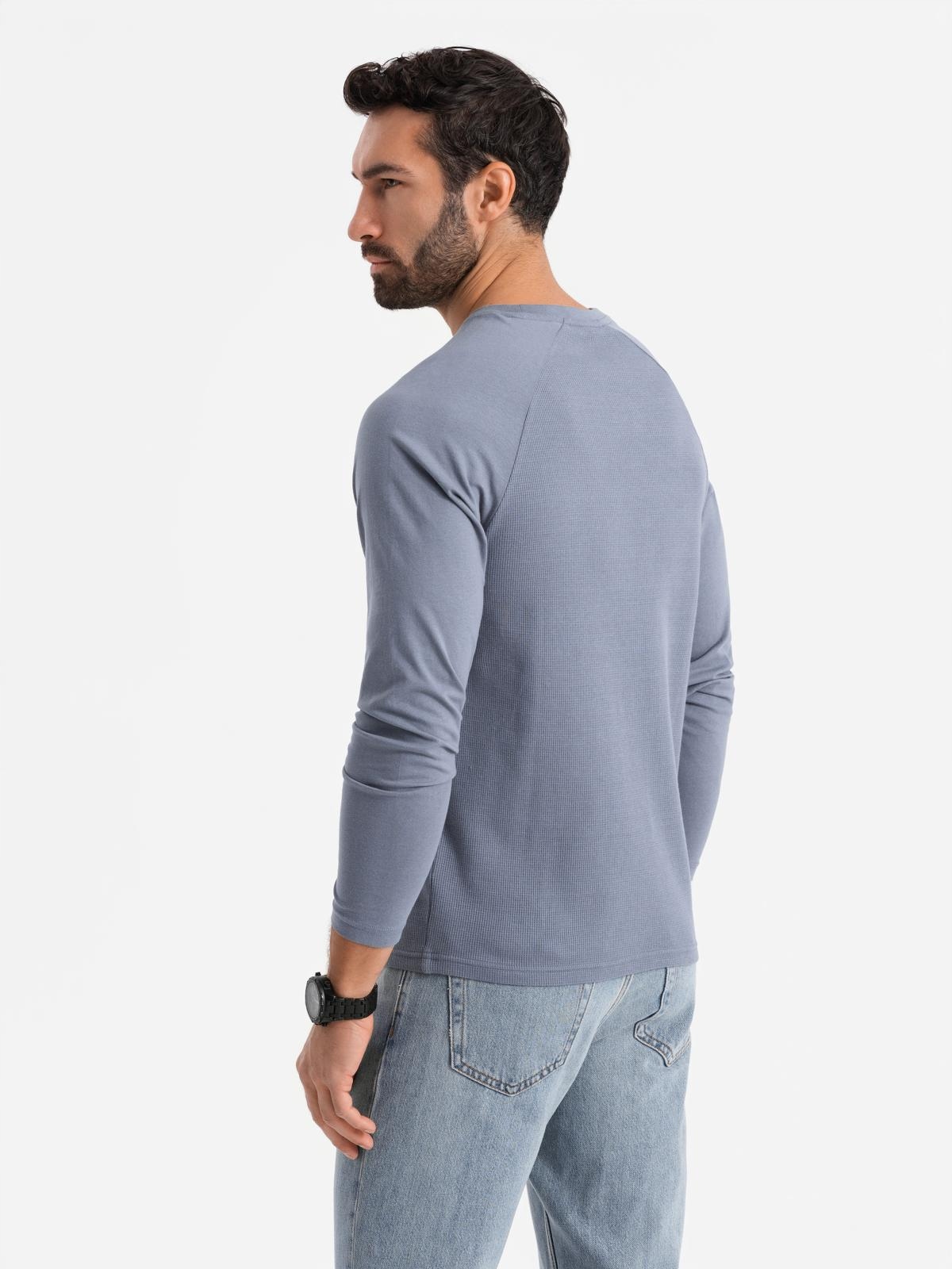 Чоловічий лонгслів з вафельною структурою, синій Ombre V8 OM-LSCL-0109, розмір M