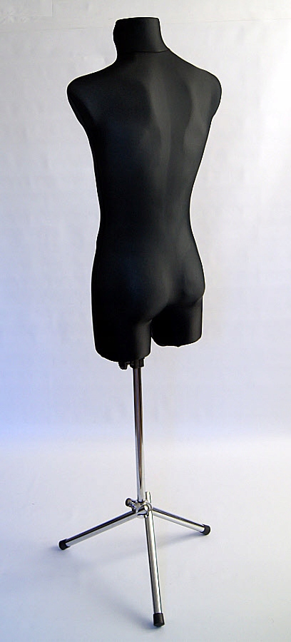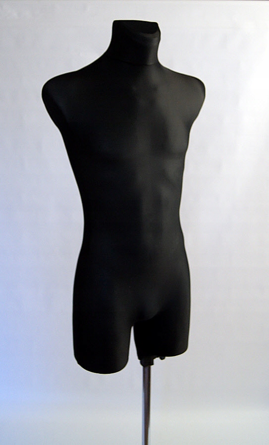Манекен із затверділого пінополістиролу, одягнений у футболку з еластичного трикотажу чорного кольору.