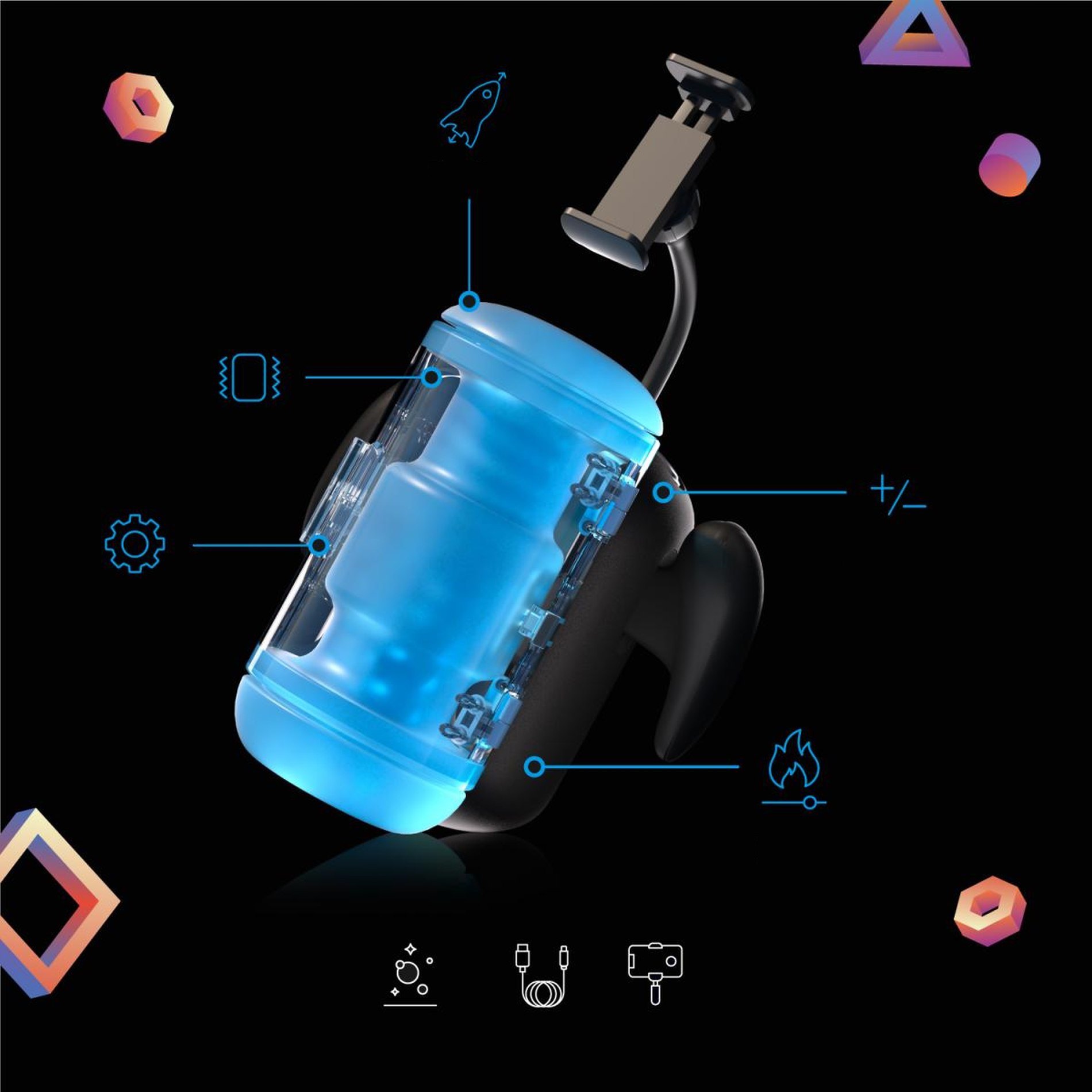 Очистити мастурбатор дуже просто. Зніміть манжету з корпусу та ретельно промийте її теплою водою та засобом для чищення секс-іграшок. Перед повторним розміщенням дайте йому добре висохнути. Wingman PRO поставляється з посібником користувача та кабелем USB.