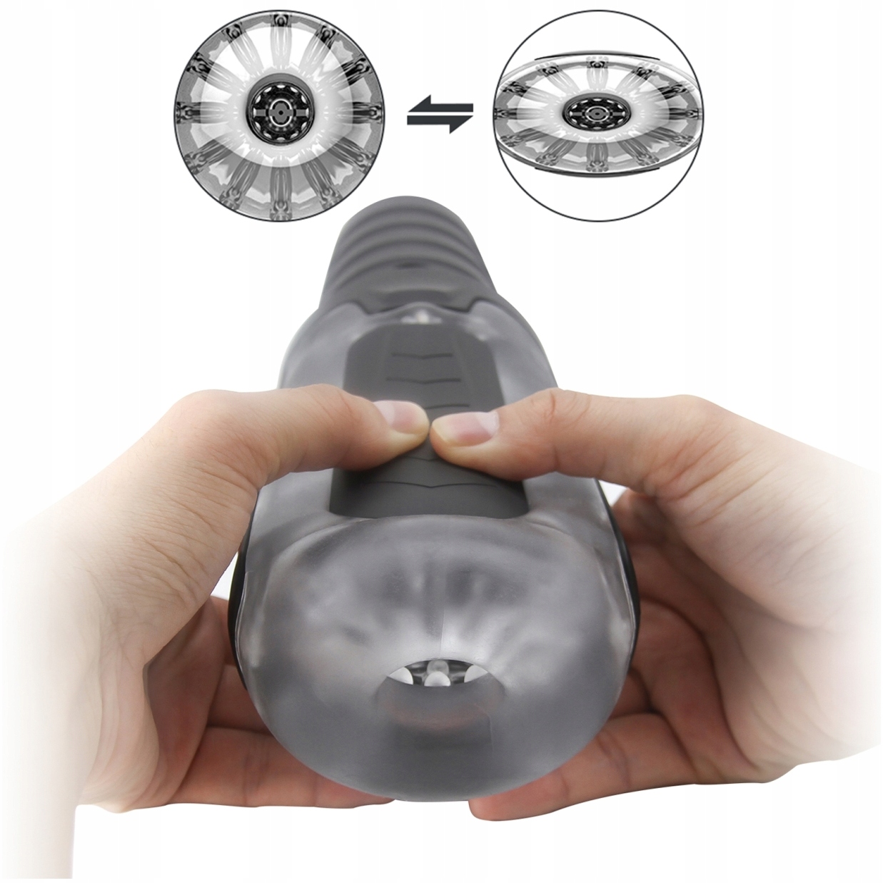 Потужний автоматичний мастурбатор, оснащений двома вібраційними двигунами, 7 функціями вібрації, 7 функціями всмоктування та захоплюючим звуком жіночих стогонів задоволення. Окремі елементи пристрою міцно підігнані один до одного та виготовлені з матеріалів найвищої якості - комбінації силікону, TPE та ABS. М'ясистий тунель насолоди наповнений стимулюючими смугами, виступами та виступами, які масажують пеніс по всій його поверхні, ефективно стимулюючи сенсорні рецептори, відповідальні за найвище задоволення та інтенсивний оргазм. Окремо керовані функції вібрації та всмоктування забезпечують безліч опцій пестощів, які ви можете вільно налаштовувати та адаптувати до своїх потреб. Якщо під час пестощів смоктання виявляється занадто сильним і ви відчуваєте дискомфорт, однією кнопкою ви можете змінити тиск усередині іграшки та зменшити інтенсивність. Крім того, коли ви відчуєте, що ви близькі до фіналу і хочете відчути себе сильніше, натисніть кнопку «H», і пристрій активує найсильнішу функцію. У комплект входять навушники, які дозволять вам повністю зануритися в природні відчуття, послухати приємні стогони і рясно вивергати, досягаючи повного задоволення. Ви можете легко демонтувати пристрій. Знявши фіксатор, ви можете зручно від'єднати трубку від механізму управління, розгорнути її навпіл і ретельно вимити всі закутки.