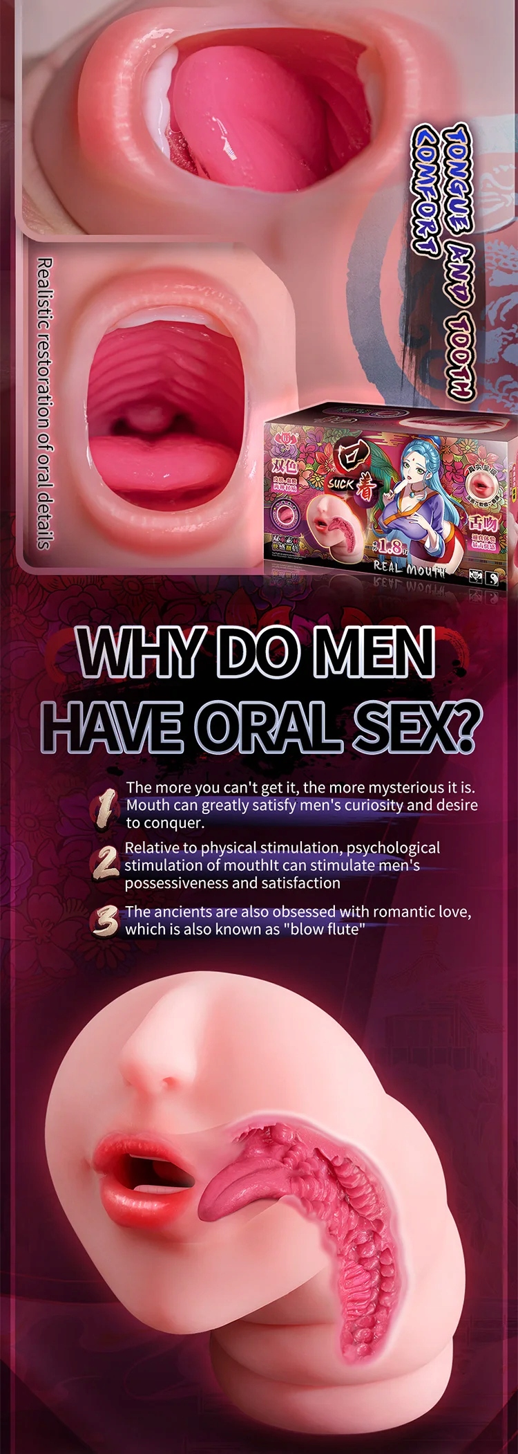 Чоловічий мастурбатор реалістичний рот, глибоке горло, сексуальний, як справжній