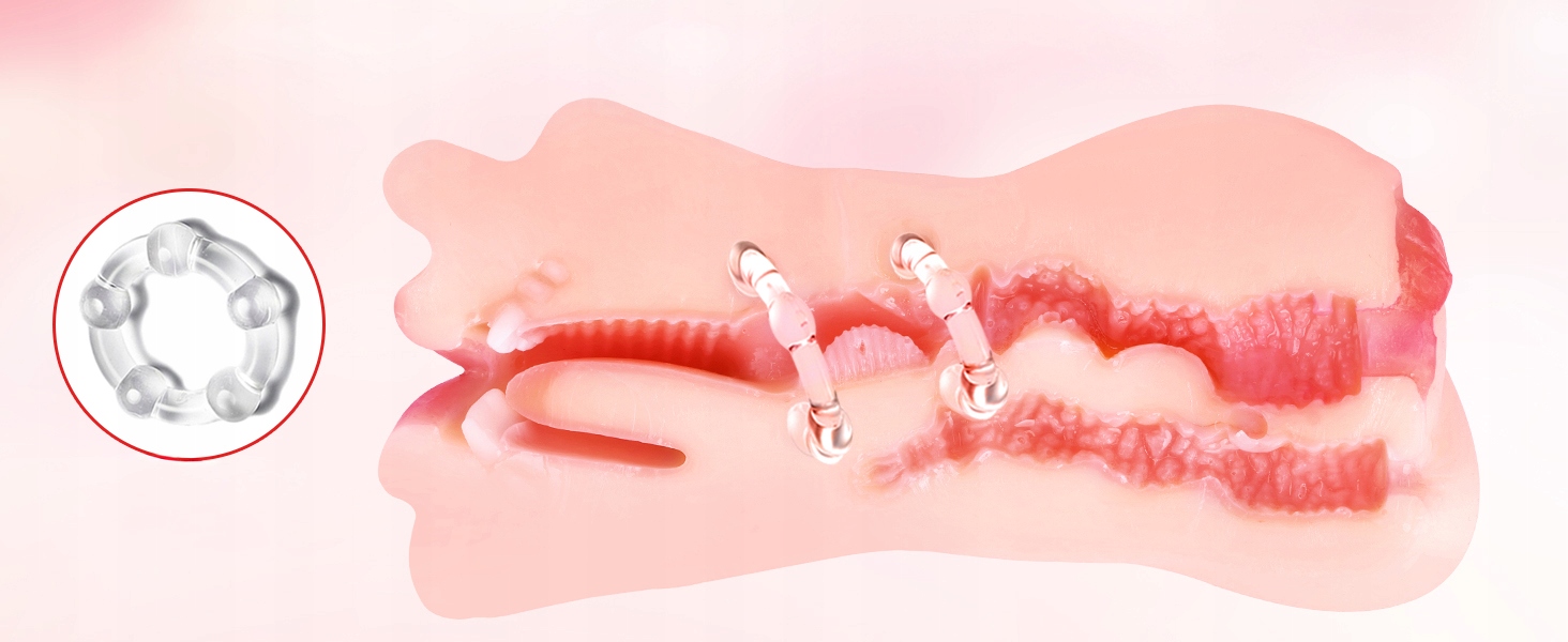 ✅ Реалістичне зображення внутрішньої частини жіночих інтимних зон. Тунелі насолоди наповнені стимулюючими виступами, а структура нагадує справжній жіночий інтер'єр.
