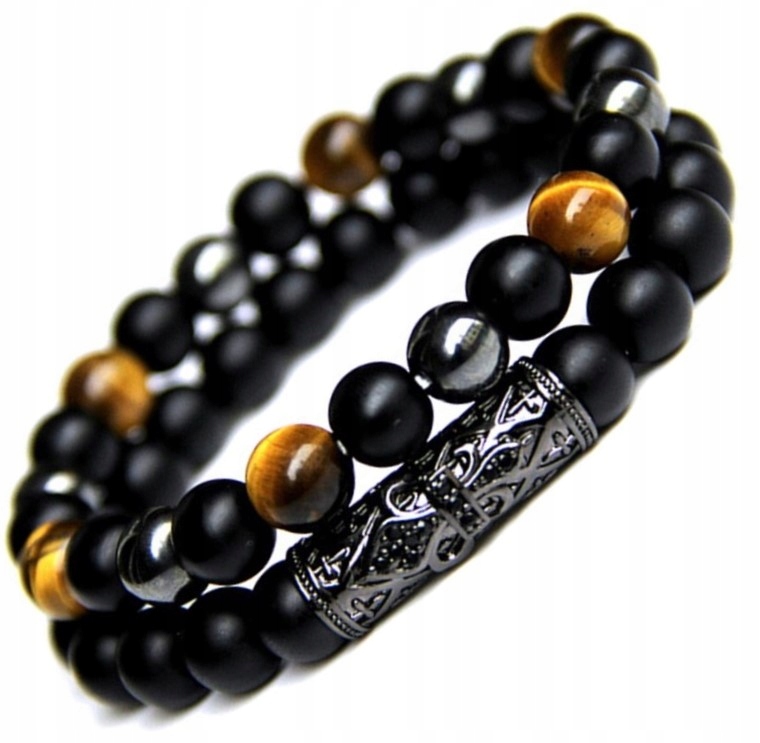 ЧОЛОВІЧИЙ НАБІР БРАСЛЕТІВ 2В1 ТИГРОВЕ ОКО КАМІНЬ ОНІКС ГЕМАТИТ