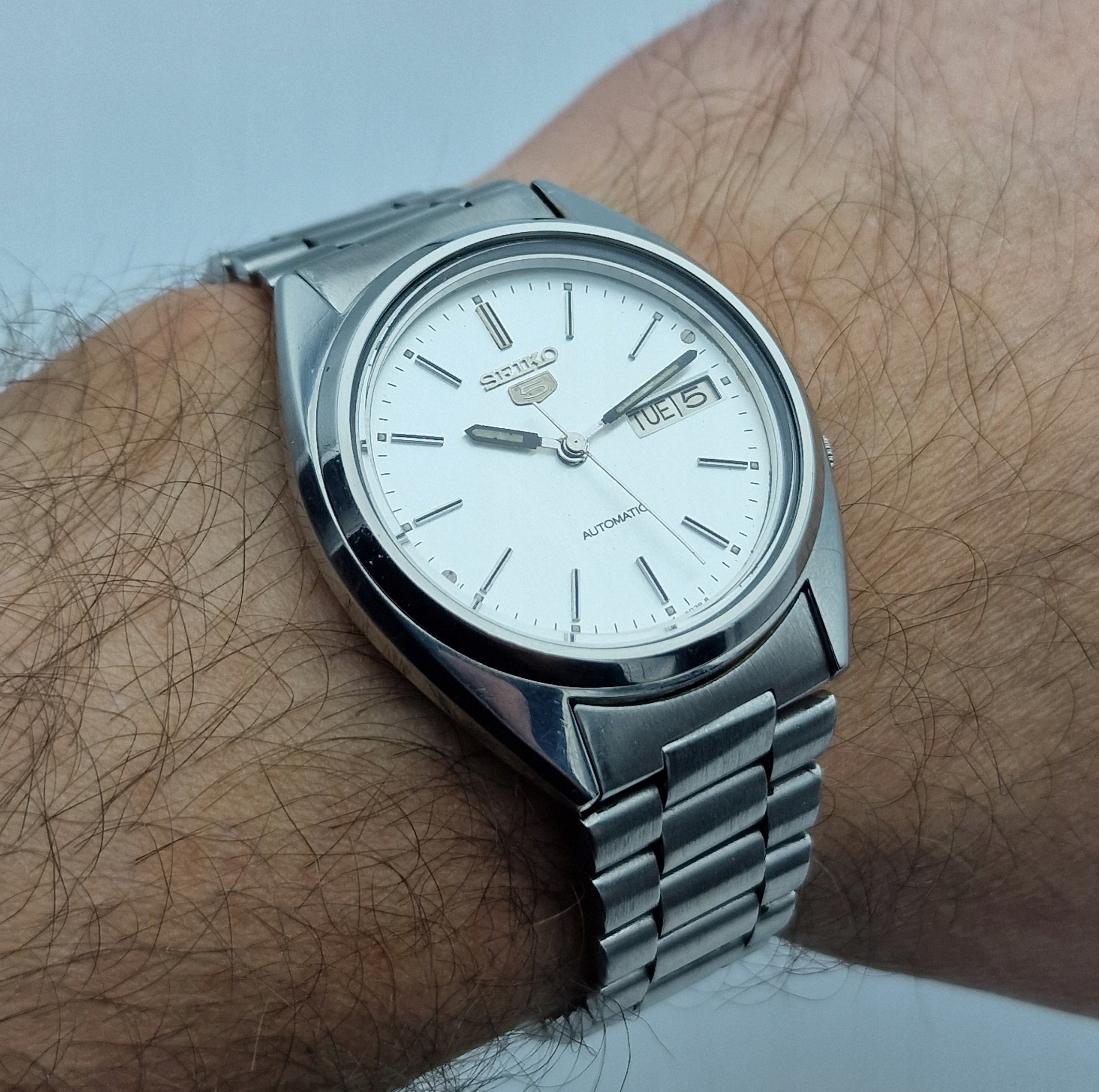 Цього разу у мене є наручний годинник для знавців і ентузіастів. Це класична оригінальна модель годинника з підписом SEIKO 5 AUTOMATIC 1970-х років у сталевому корпусі. Годинник працює добре. Майже в ідеальному стані