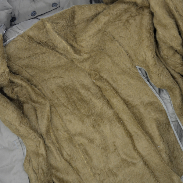 Оригінальний італійський армійський фрак із оливковим сірим кольором. Застібається на двобортні золоті гудзики. Пальто має дві кишені зовні. Оснащений додатковою ізолюючою підкладкою, яка кріпиться на кнопках.